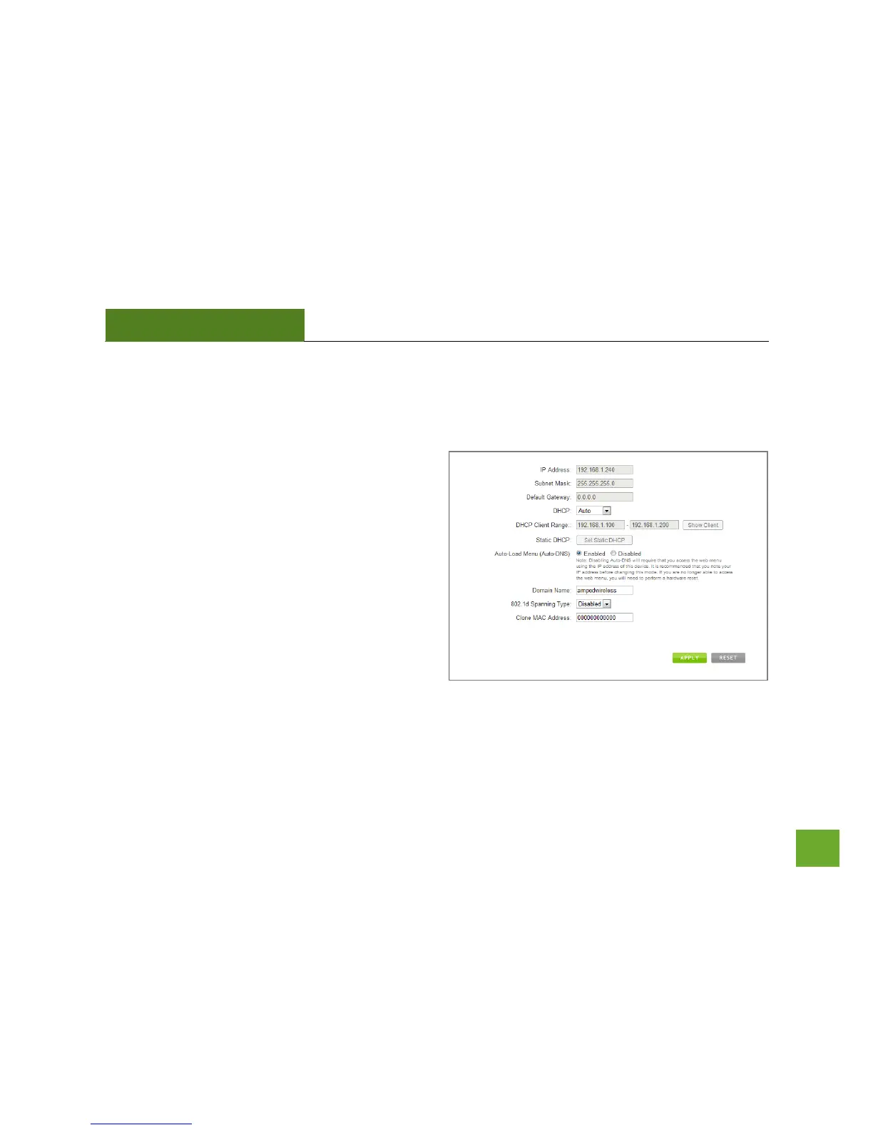 choosing Client, Server or Disabled from the DHCP drop down menu. This is only for advanced users.