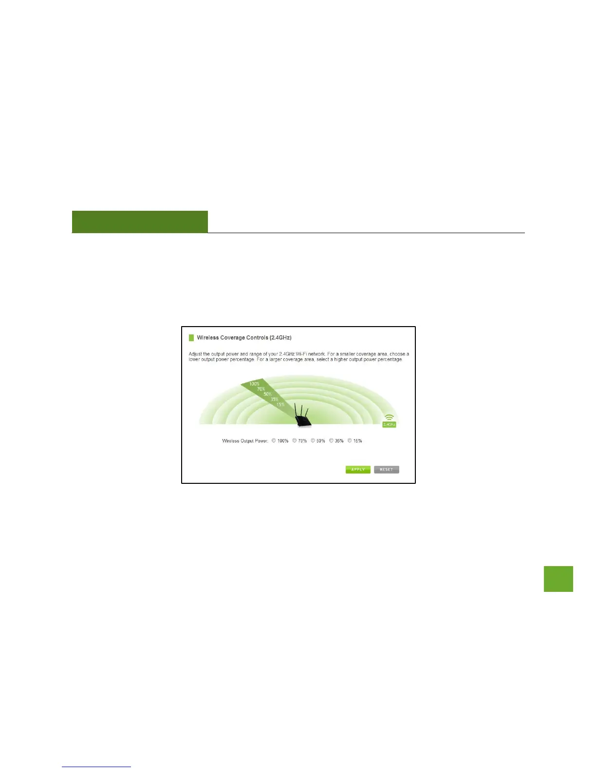 Adjust the output power of the Router to control the coverage distance of your 2.4GHz wireless network. For