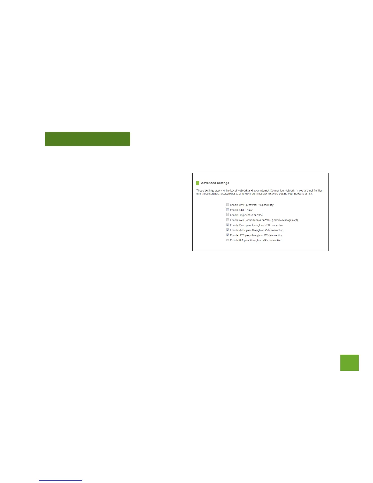 connection. With UPnP enabled, network devices may change security settings within the Router’s firewall to