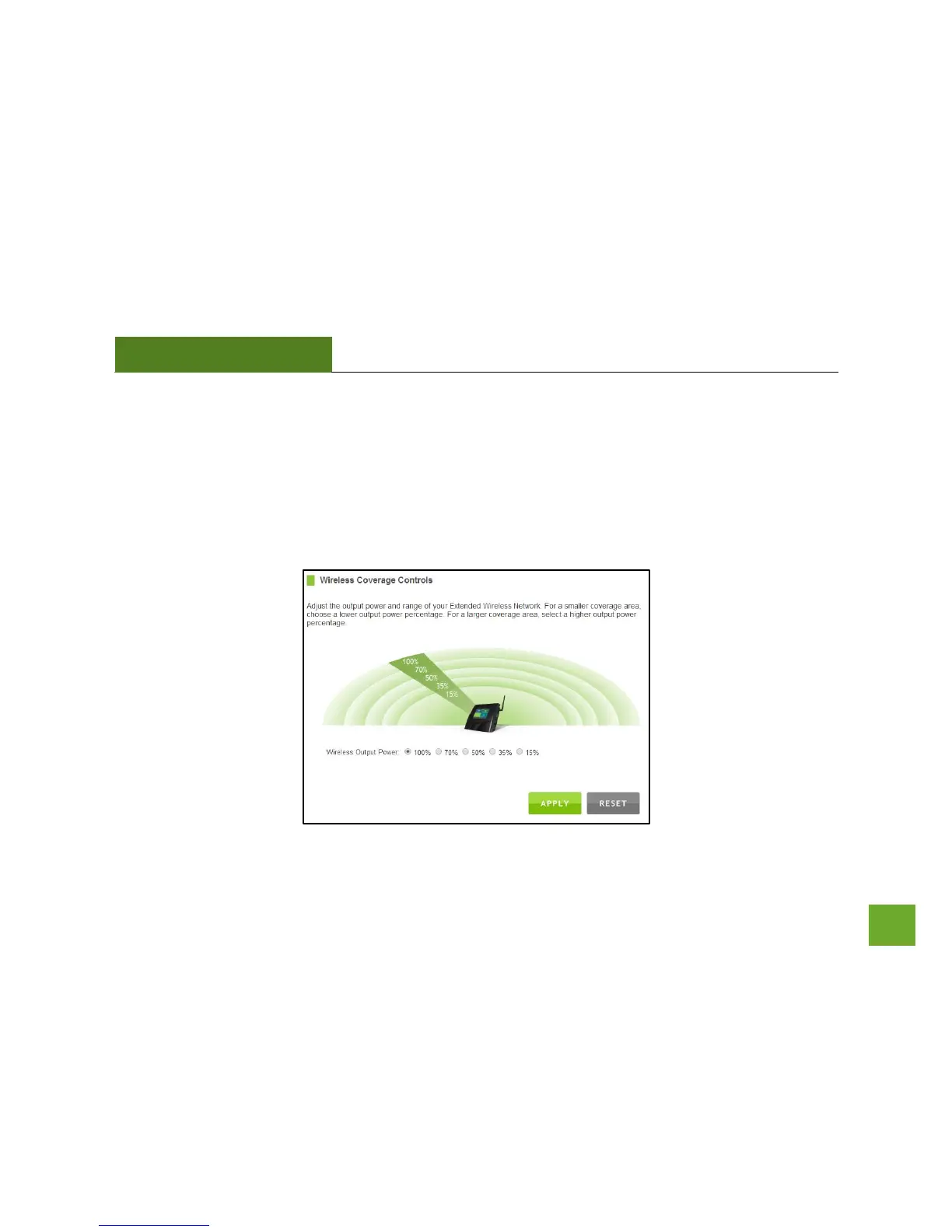 Adjust the output power of the Range Extender to control the coverage distance of your Extended Wi-Fi