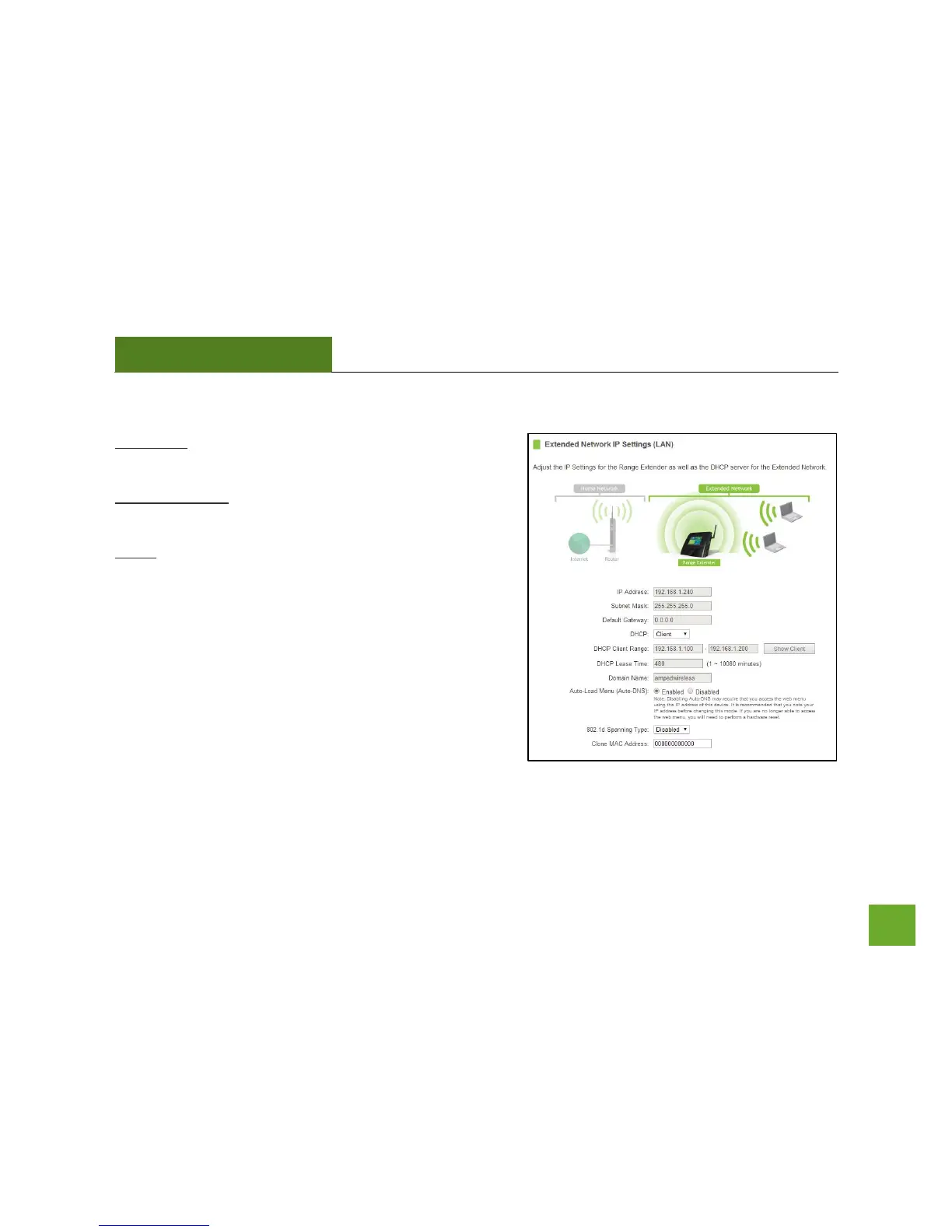 DHCP: The Range Extender includes a complex AUTO DHCP