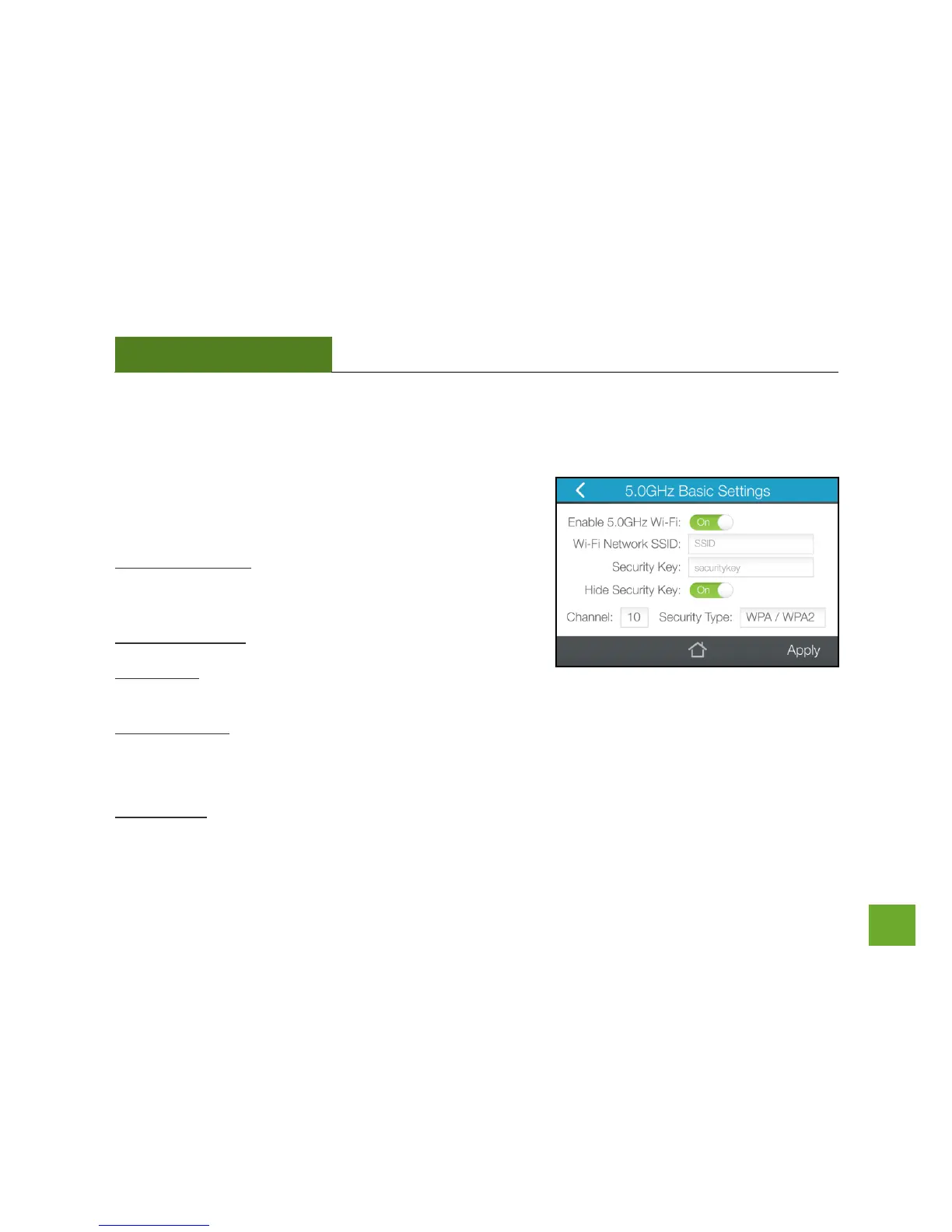5.0GHz Wi-Fi Settings (Touch): Basic Settings