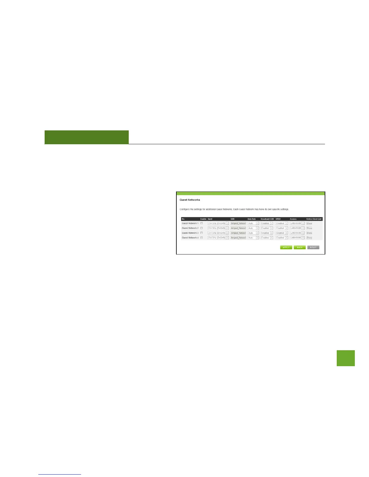 Guest Networks: You may add additional names (SSID) to your Wireless Network with different characteristics
