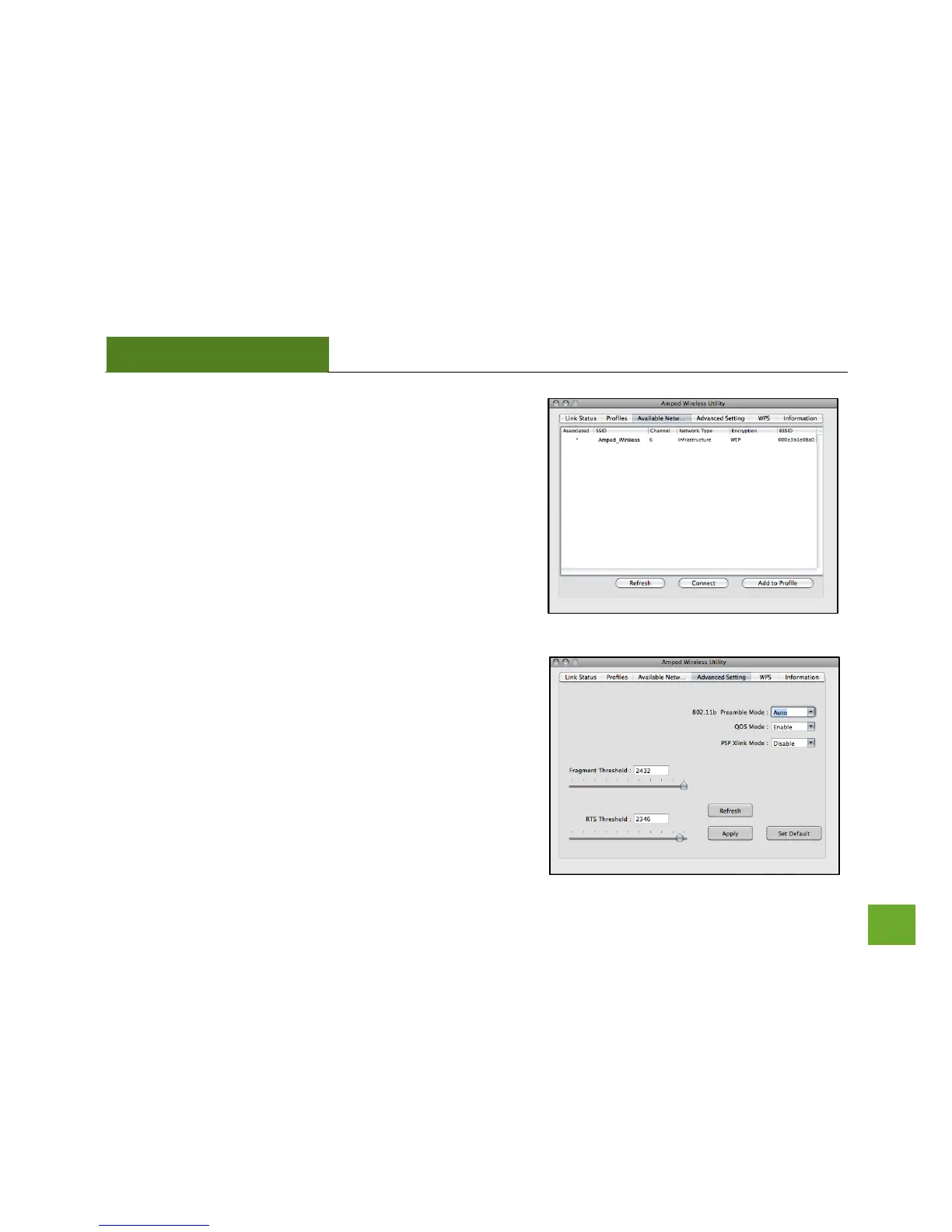 Advanced Settings: Configure advanced wireless settings for