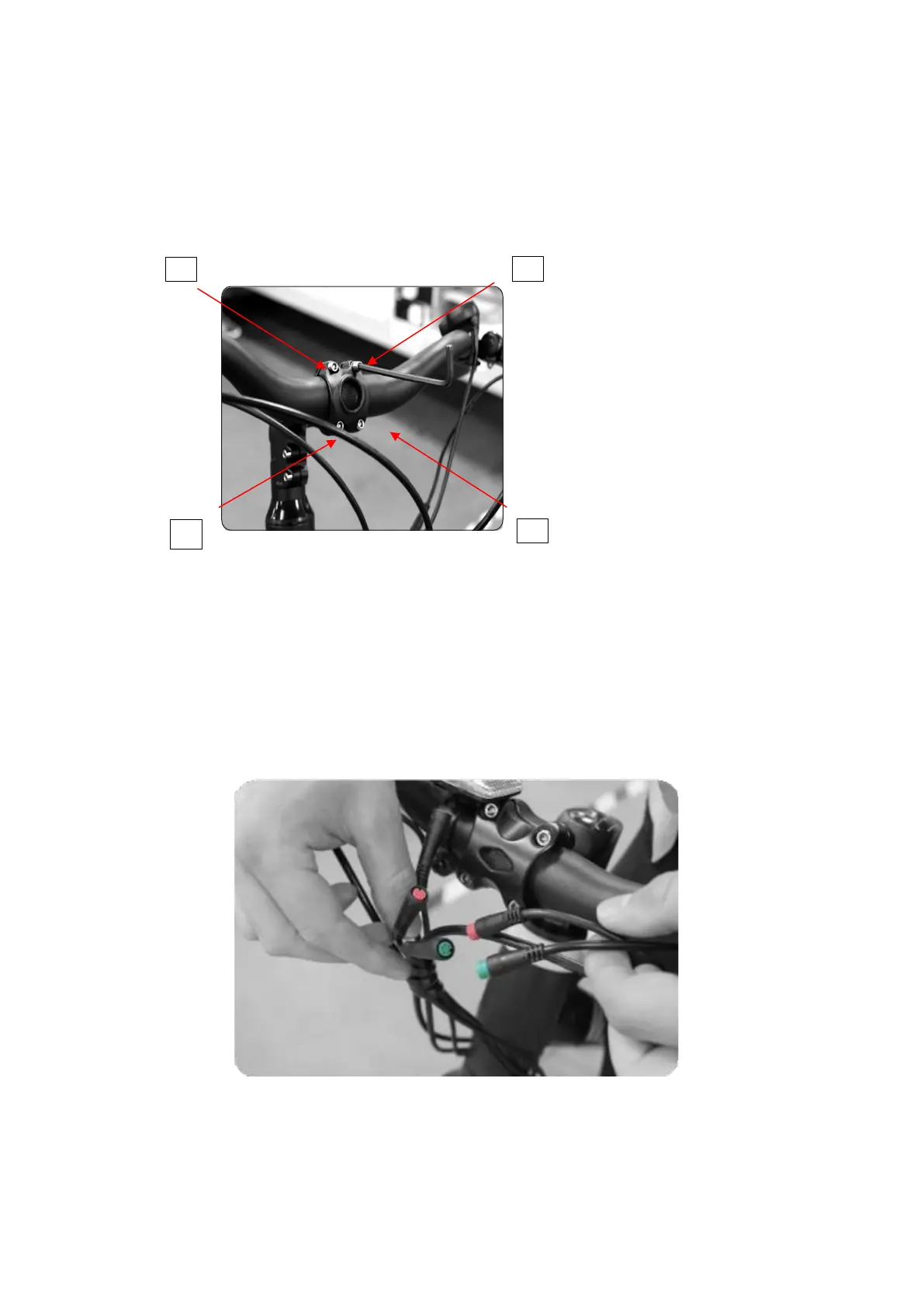 3. Place the handlebar into the handlebar stem and screw the 4 bolts in a cross-diagonal order using a