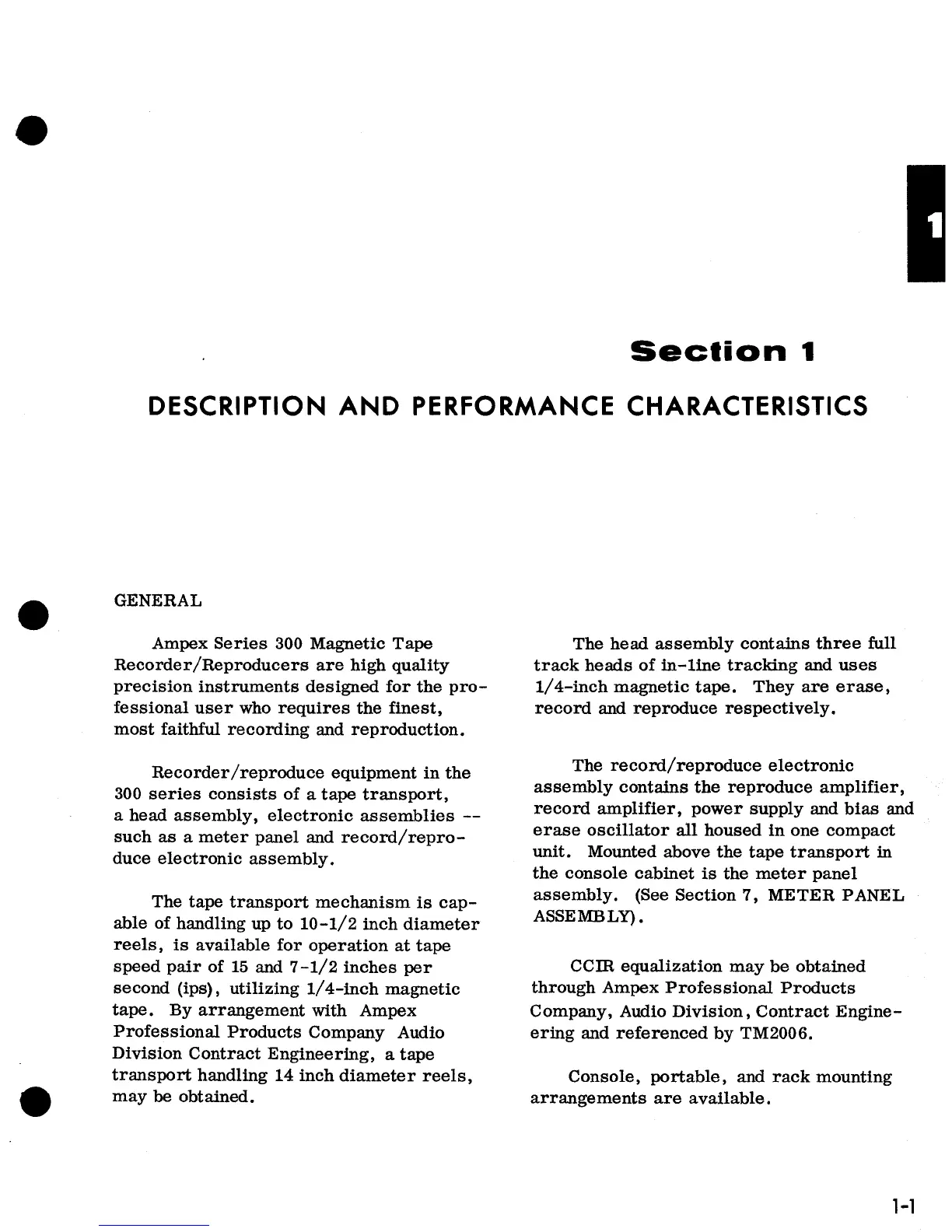 Ampex 300 - Ampex Model 300 Description and Performance Characteristics; General Overview of Ampex Series 300
