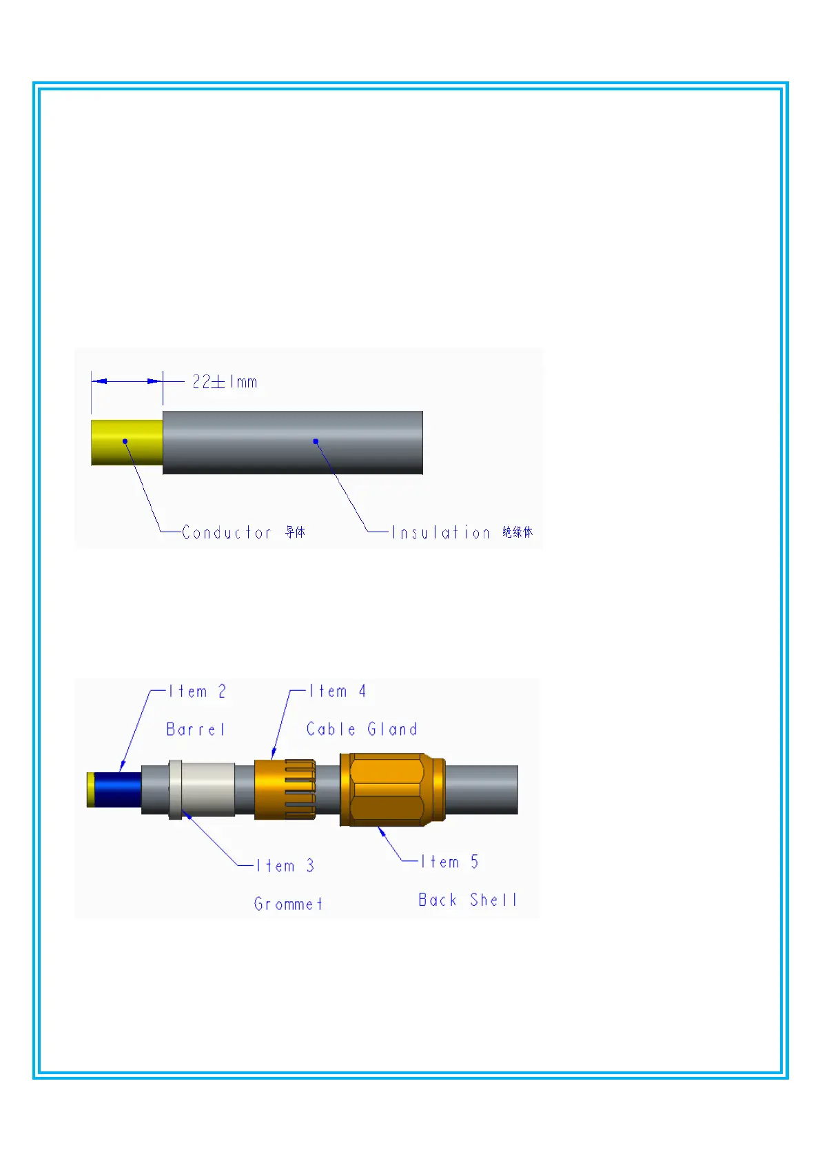 Amphenol SLPPC70BSB1 - Part 2: Plug Assembly; Step 1: Wire Cutting and Stripping; Step 2: Un-Assemble Item 2&3&4&5 over the Cable as Shown