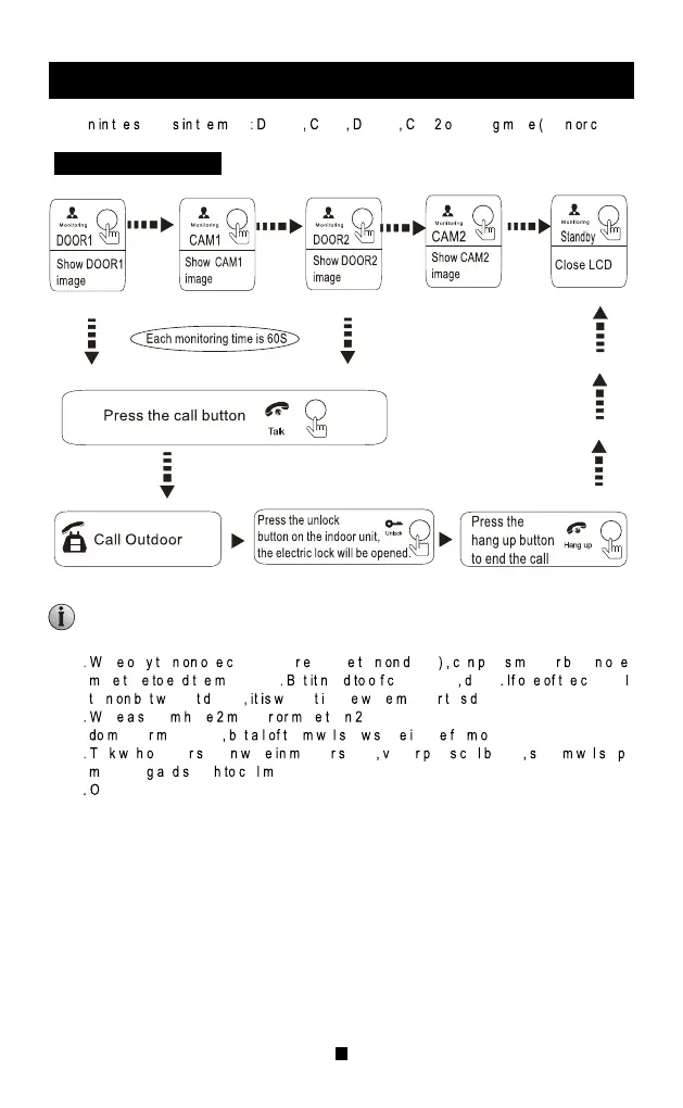 camera is 5 minutes. After the monitoring time, the indoor monitor will automatically return to