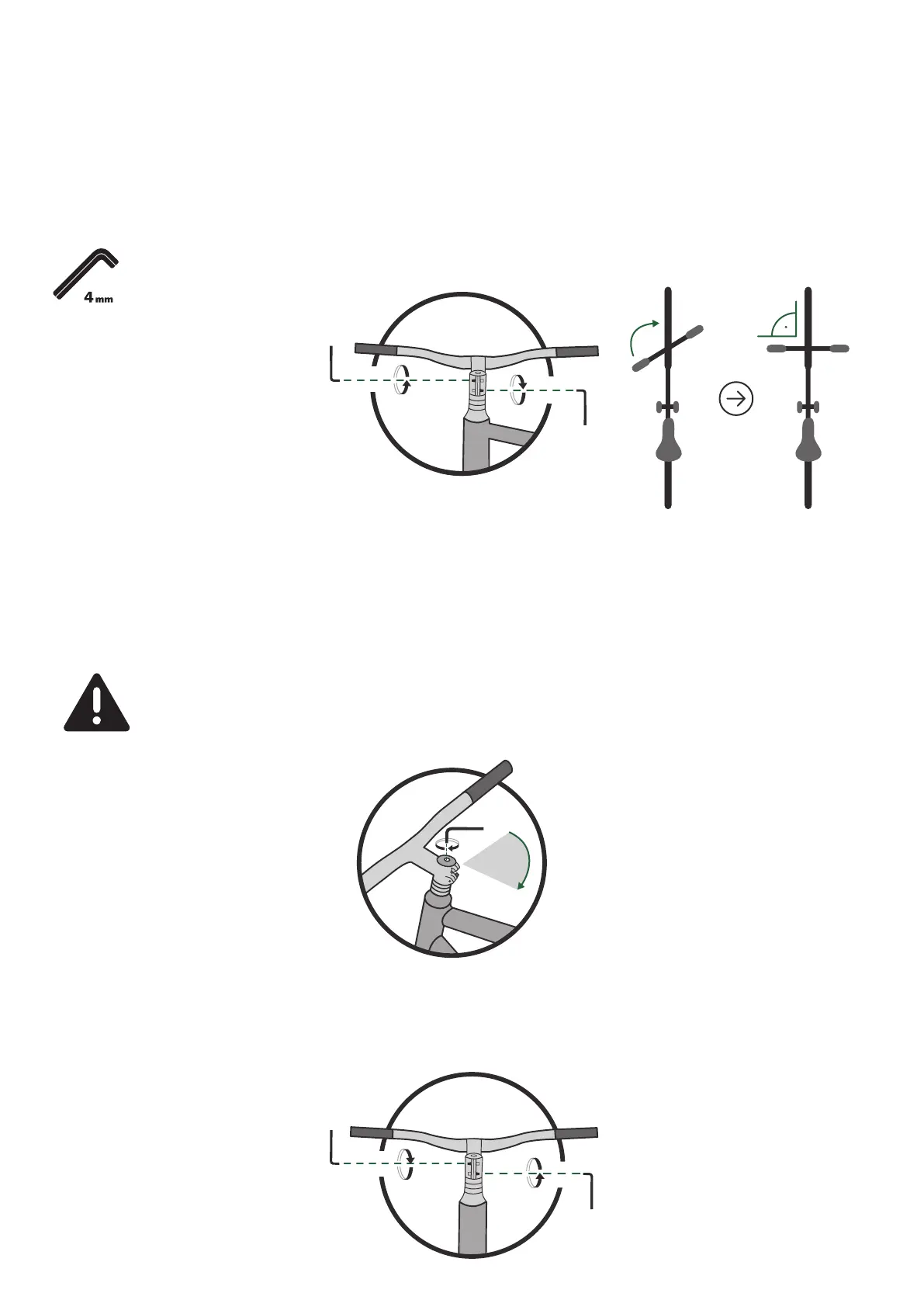 2. Now straighten the handlebars. Do not tighten the bolts yet.