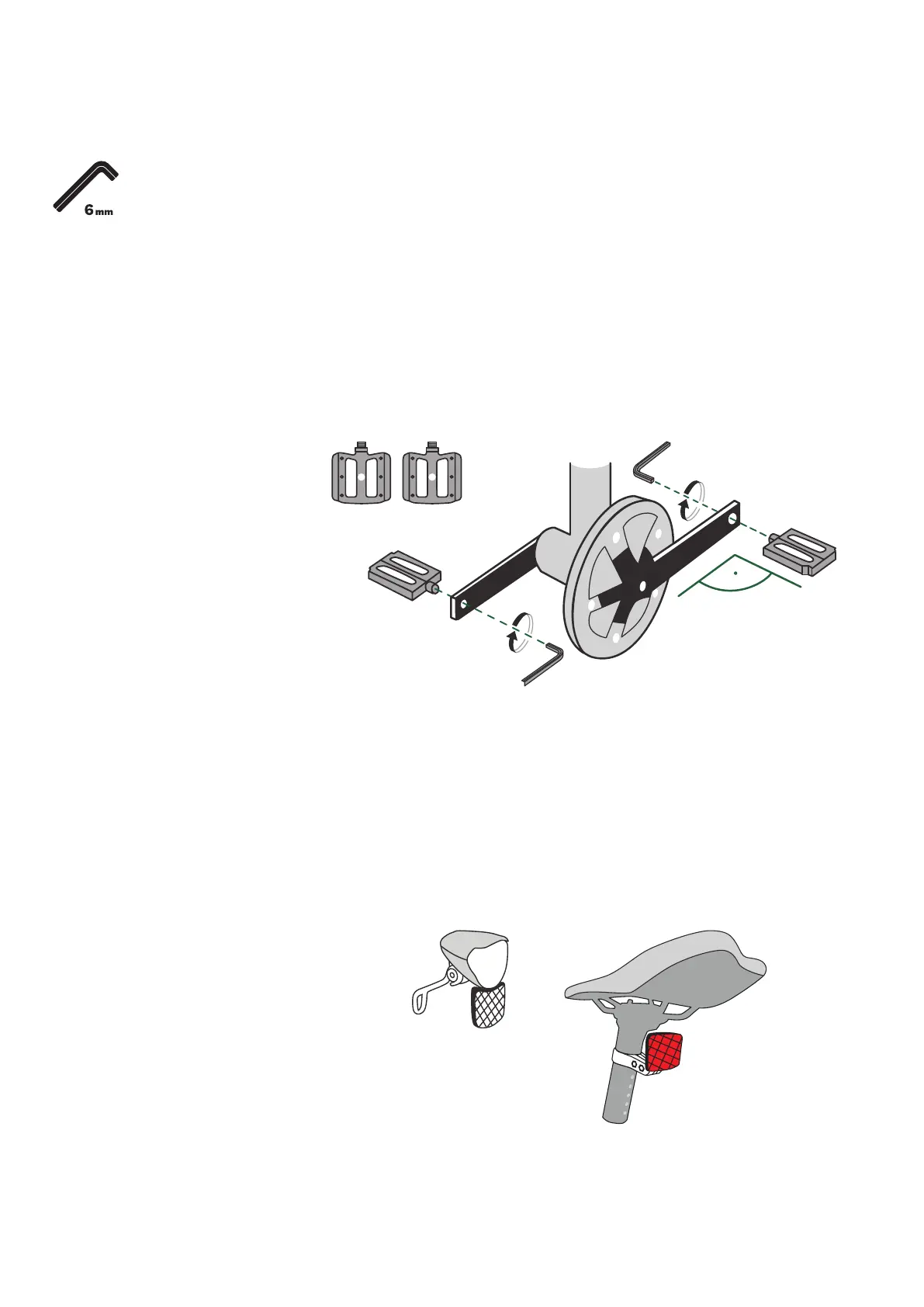 Attach the pedals 1. The pedals are marked R (right) and L (left). This refers to the