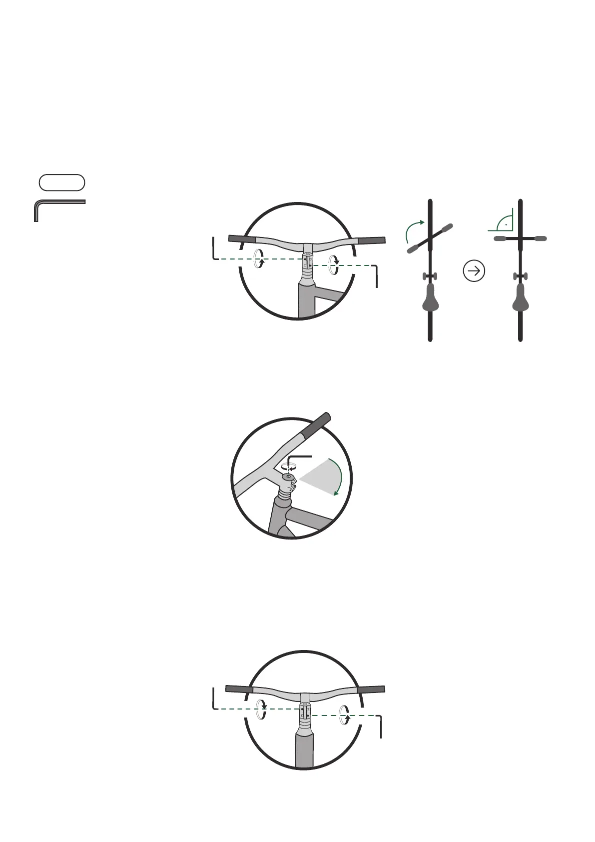 Adjust the handlebar 1. Take the 4 mm hex key and loosen the side bolts of the stem. Turn