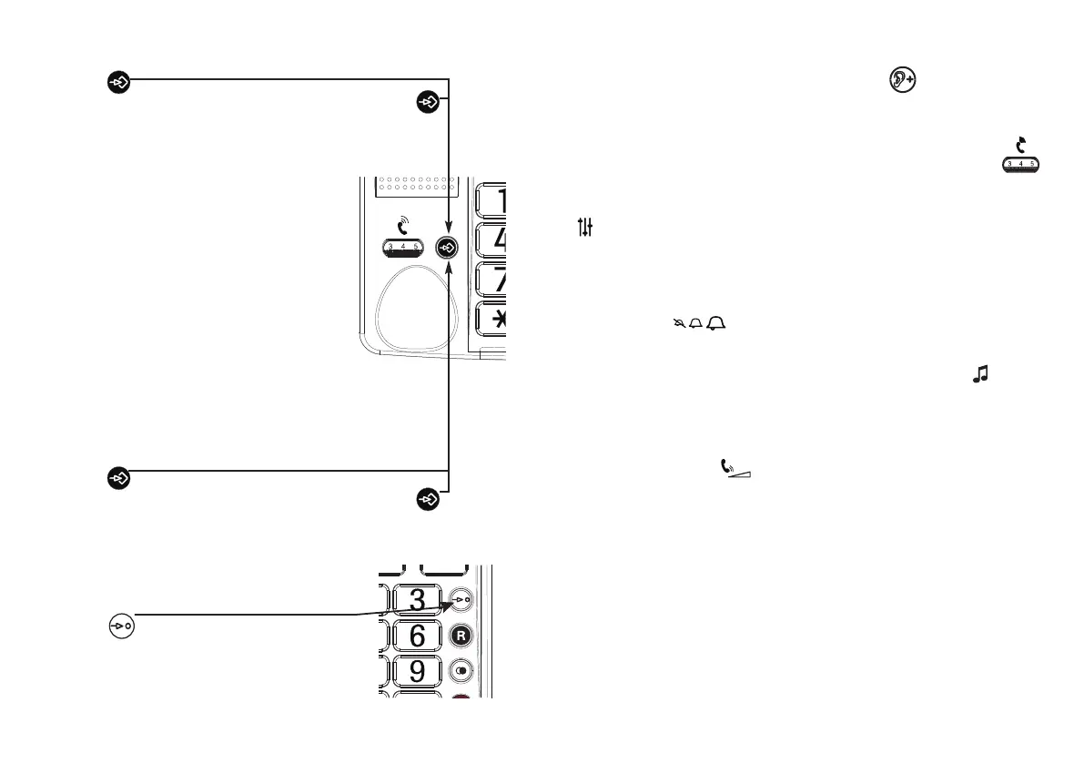Het volume in de hoorn kan met een druk op de -toets worden