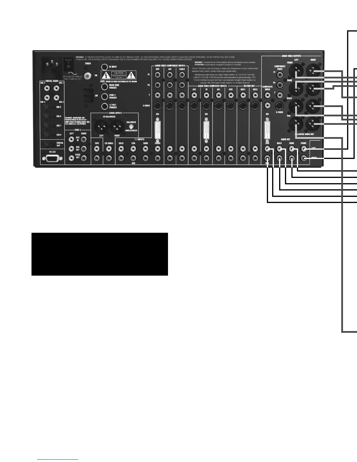 the A/V PROCESSOR to an external power amplifier such as