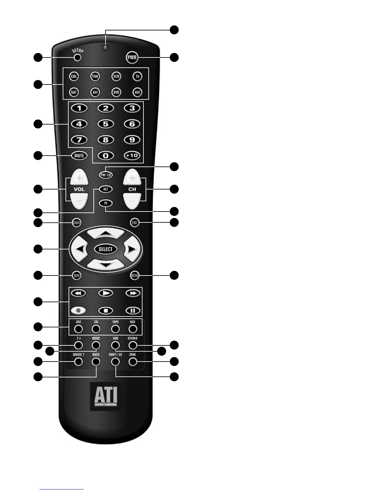 /V PROCESSOR. This remote also controls as many as seven