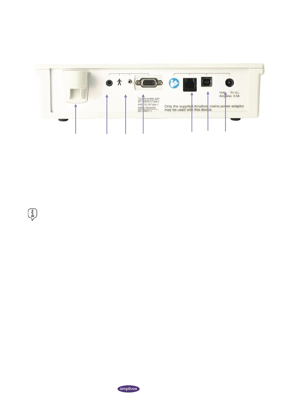 Please note: Only connect the accessories supplied with the instrument or supplied by Amplivox or an Amplivox