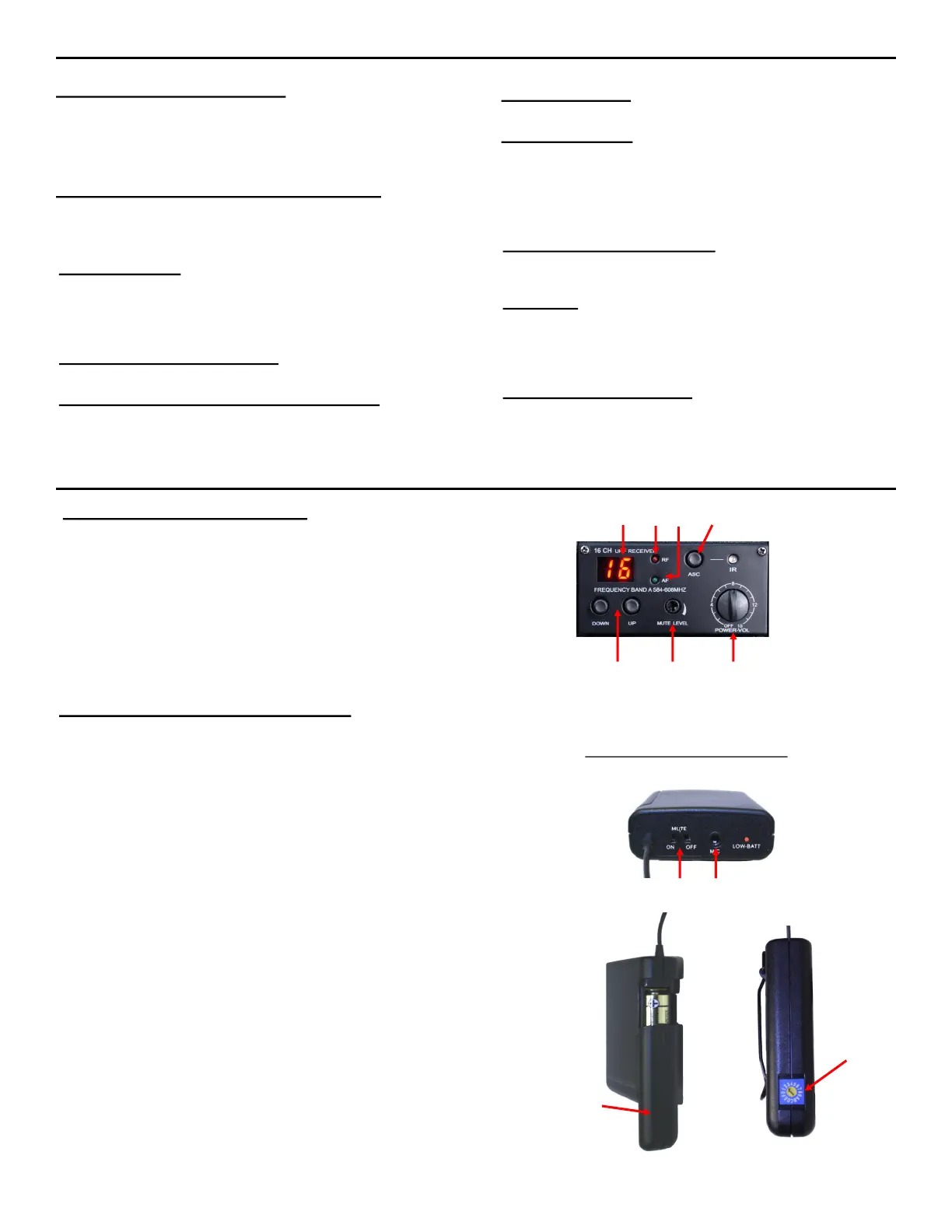 • The transmitter bodypack (IF USED) is operated by 1 - "AA" 1.5 Volt