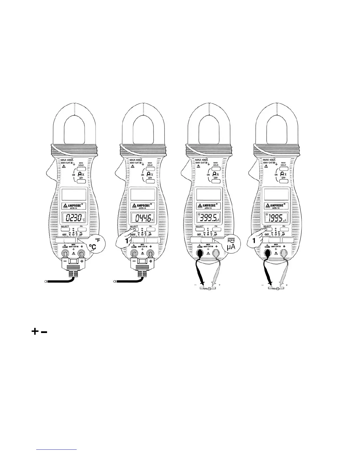 position. The unit defaults at DC. Press SELECT button momentarily to select AC.