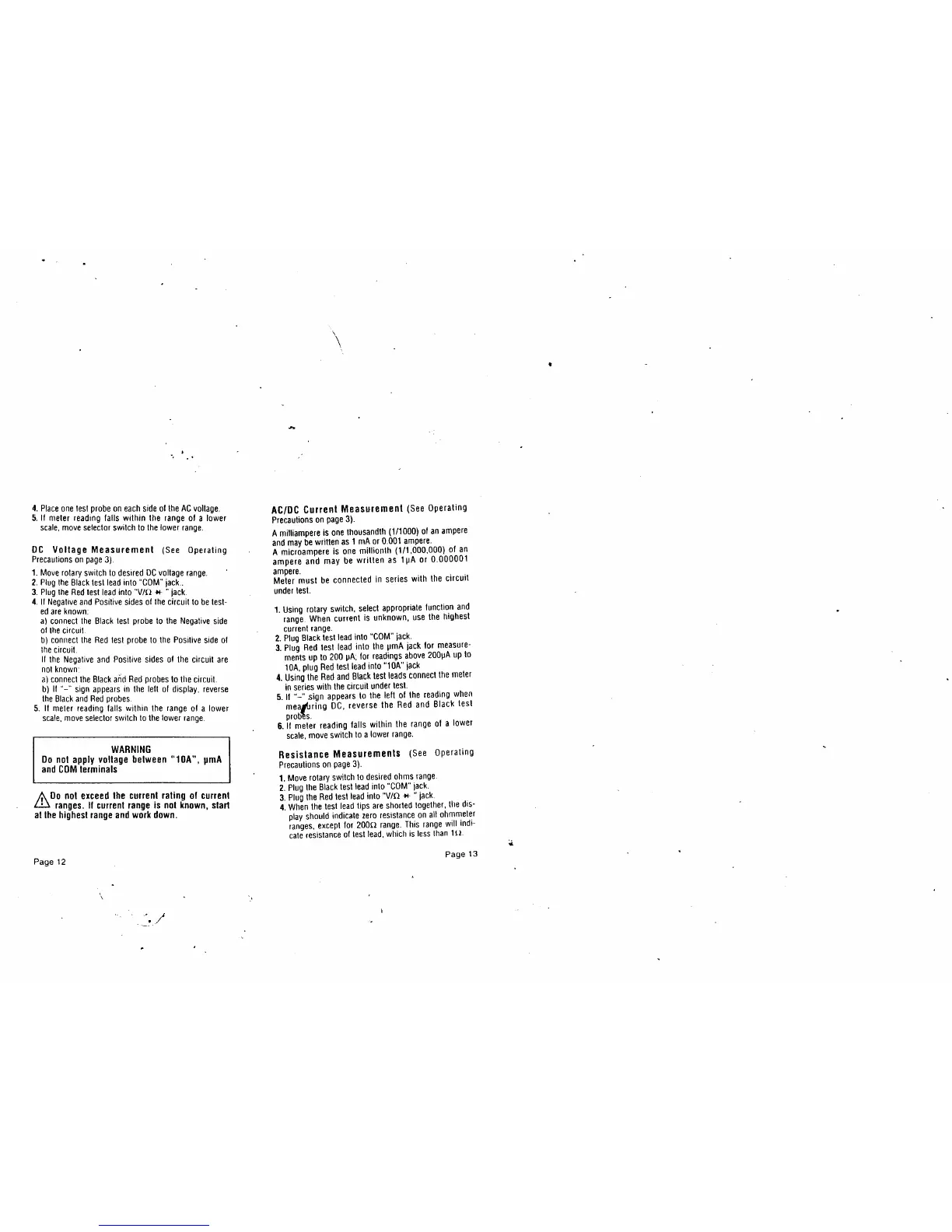 Amprobe AM-20 - DC Voltage Measurement; AC;DC Current Measurement; Resistance Measurement