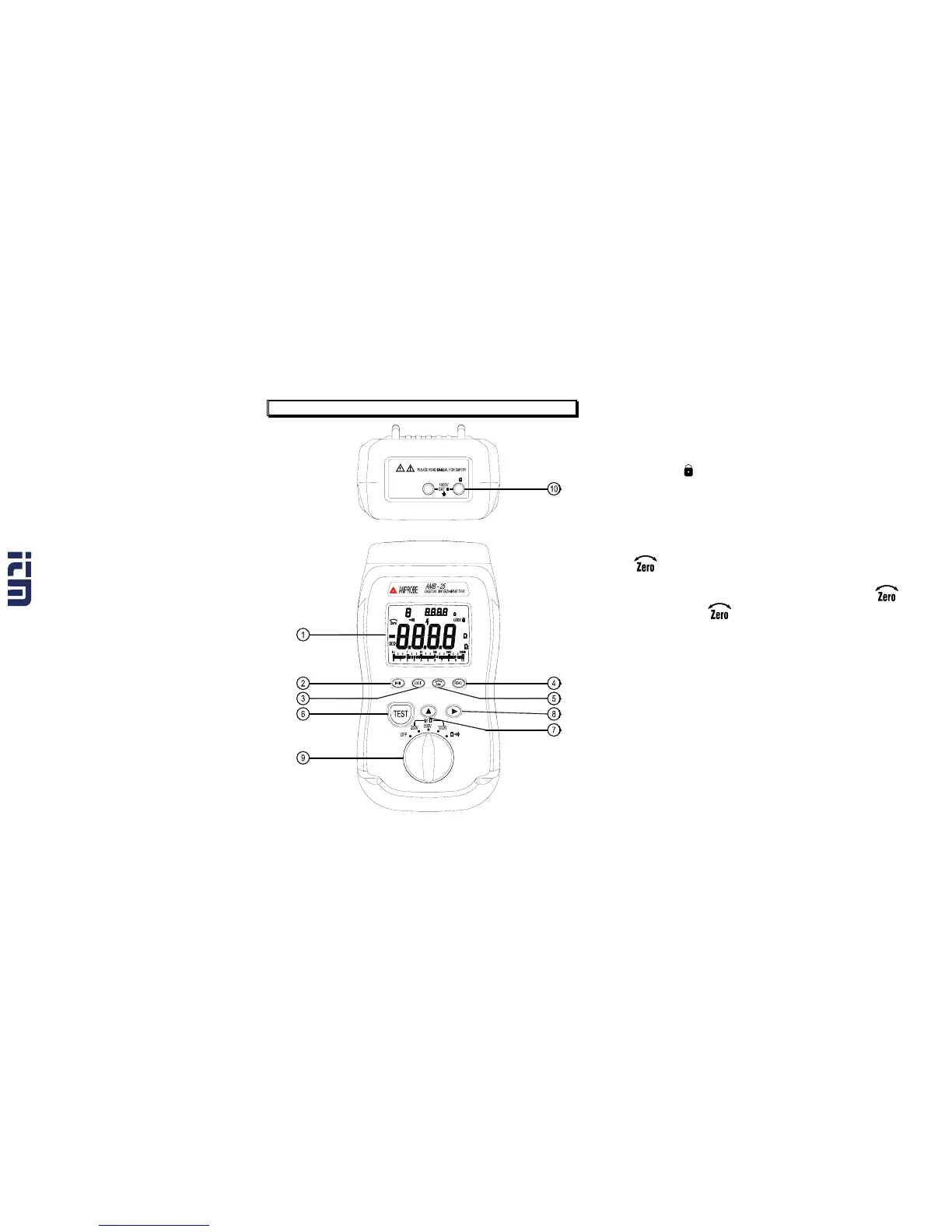 LOCK key : Locks the test Insulation Resistance (M