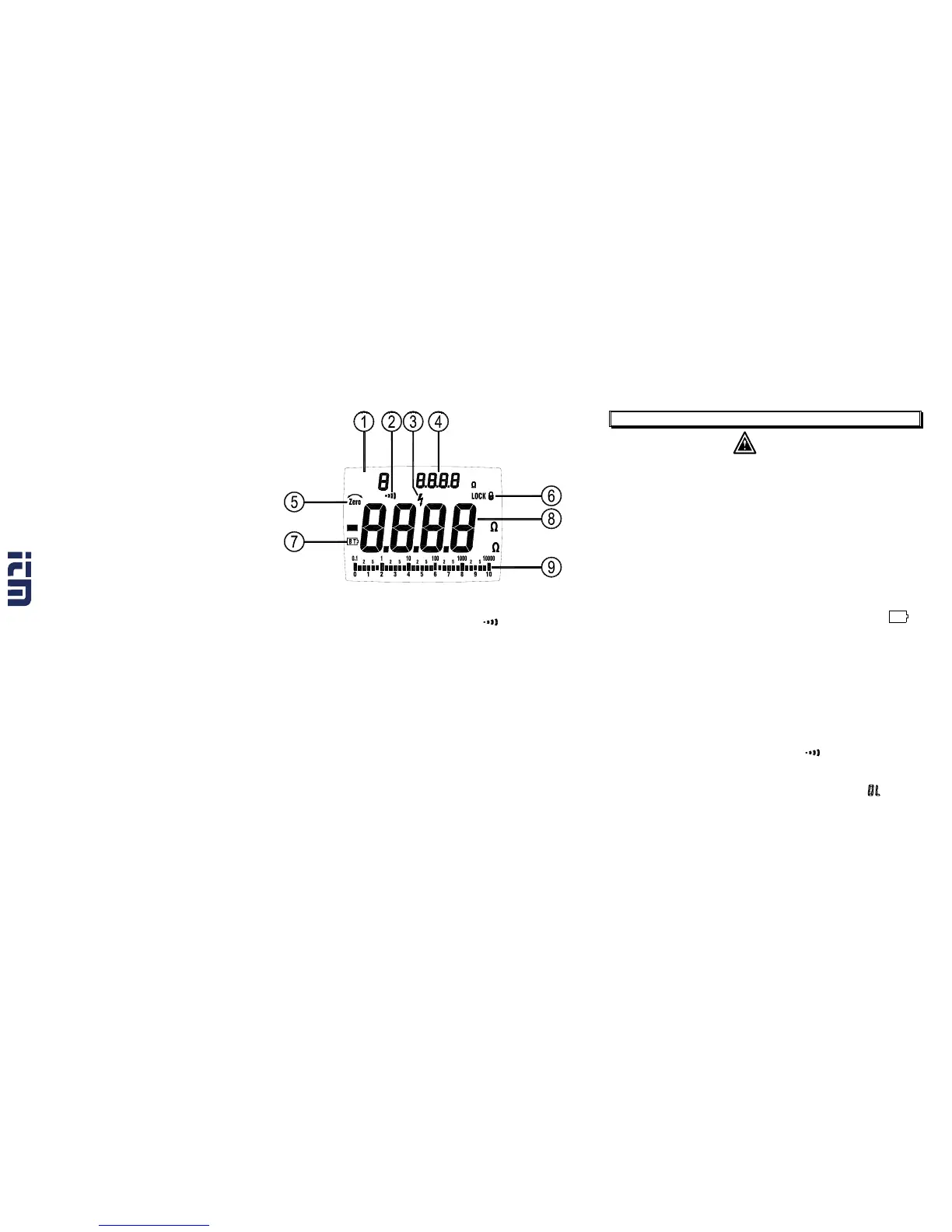 Analog bar graph displays resistance on a logarithmic scale and