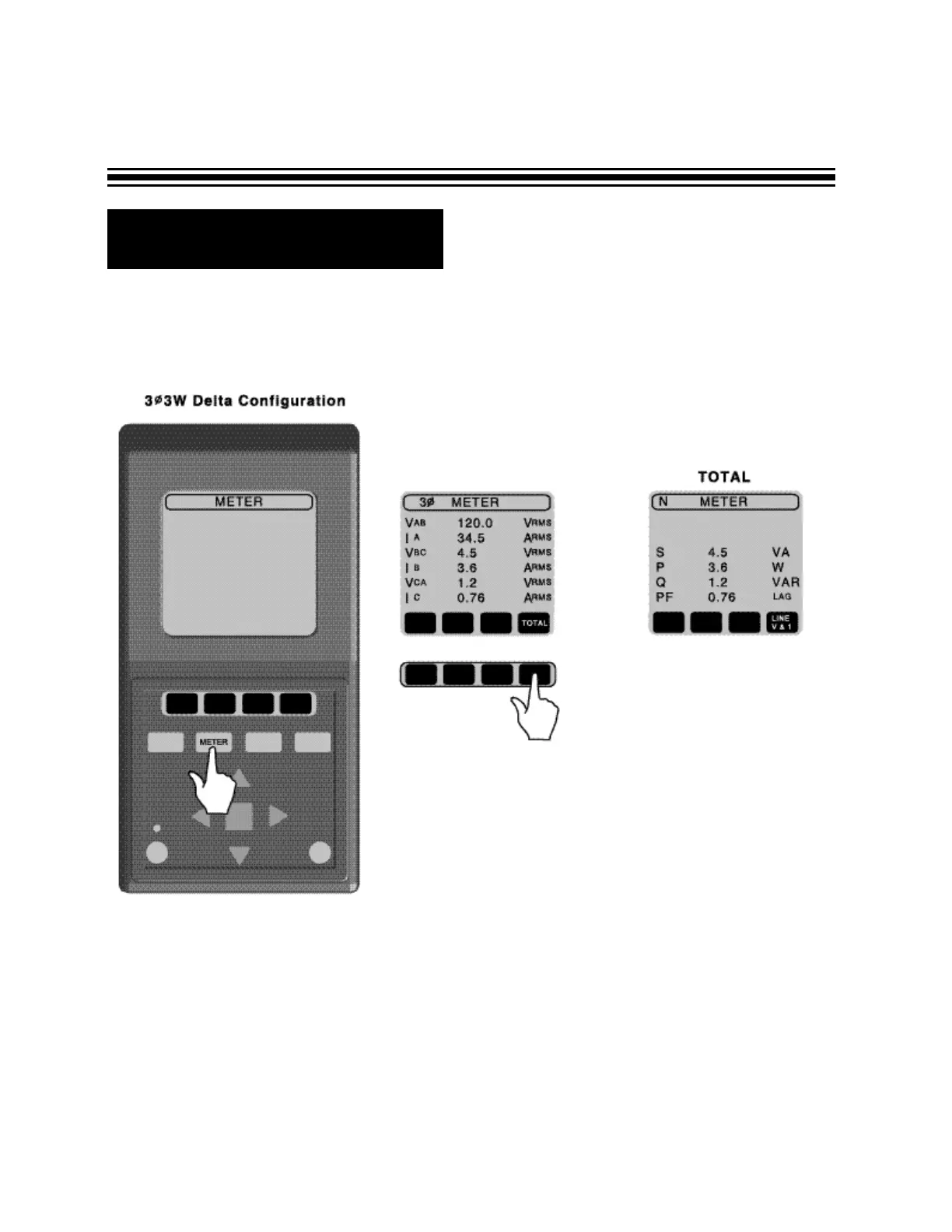 Using the TOTAL (corresponding black key), you can display the total 3-Phase power measurements