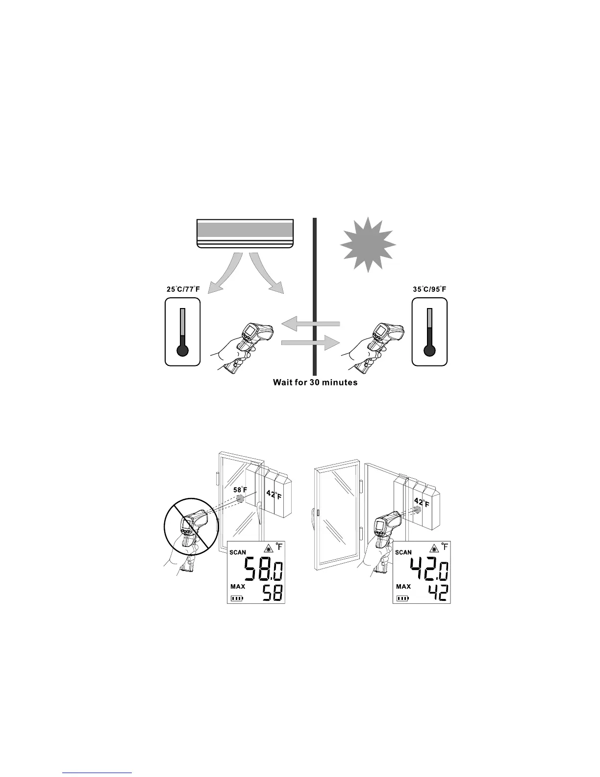 4. Steam, dust, smoke, etc., can prevent accurate measurement by obstructing