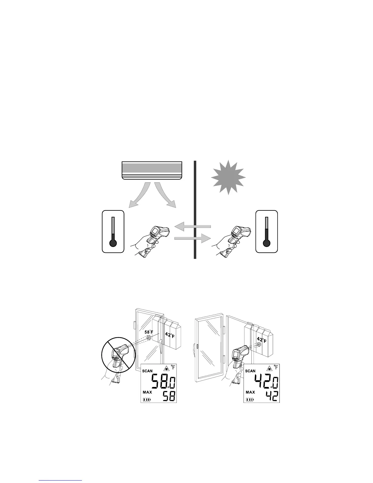 2. Instrumentet kan inte mäta genom transparenta ytor, som till exempel glas.