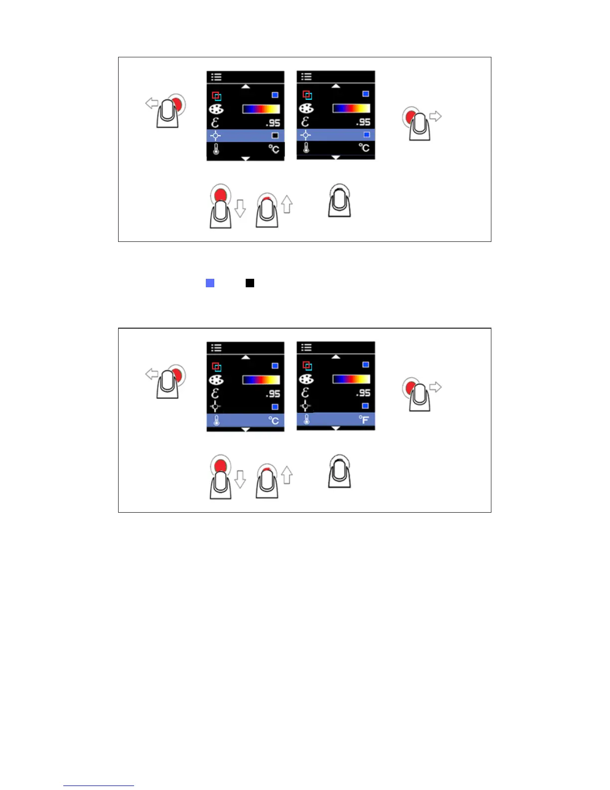 Amprobe IRC-110 - Display Customization Options; Center Point Marker Setup; Temperature Unit Selection (°F;°C)