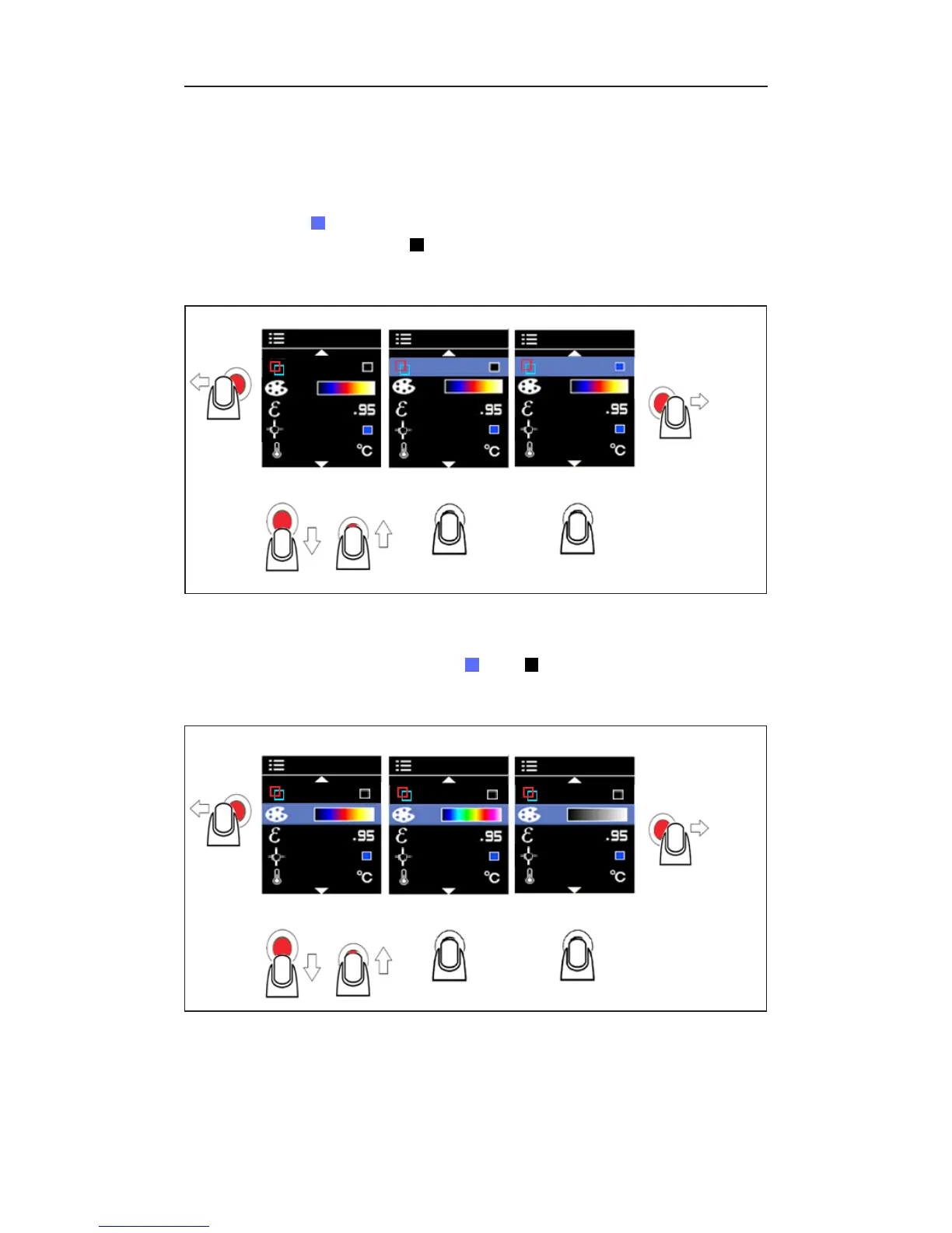 l'émissivité, le marqueur de point central, l'unité °C/°F sélectionnable et la