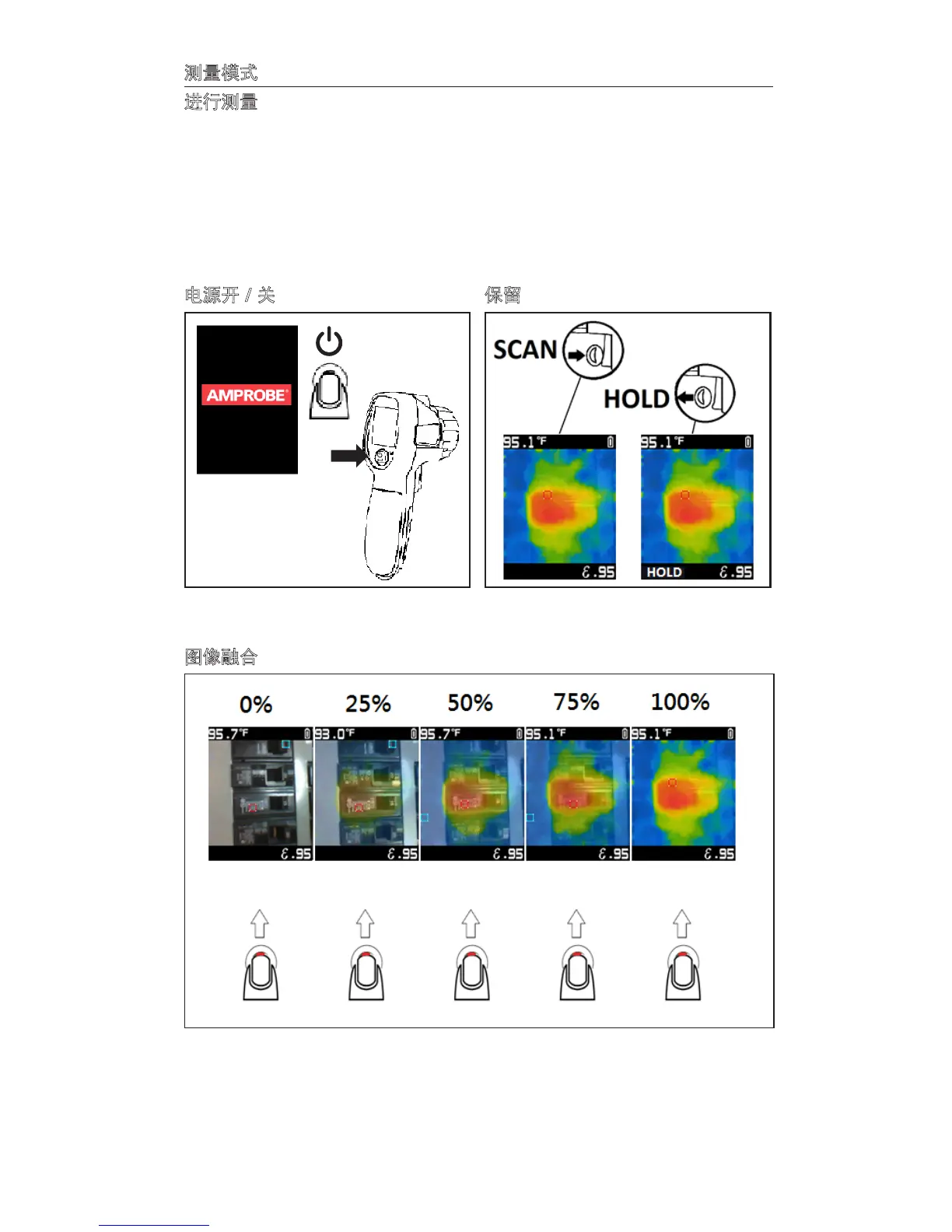 开机时产品将处于测量模式。按下触发器可保留一个图像。再次按下可返回实时图