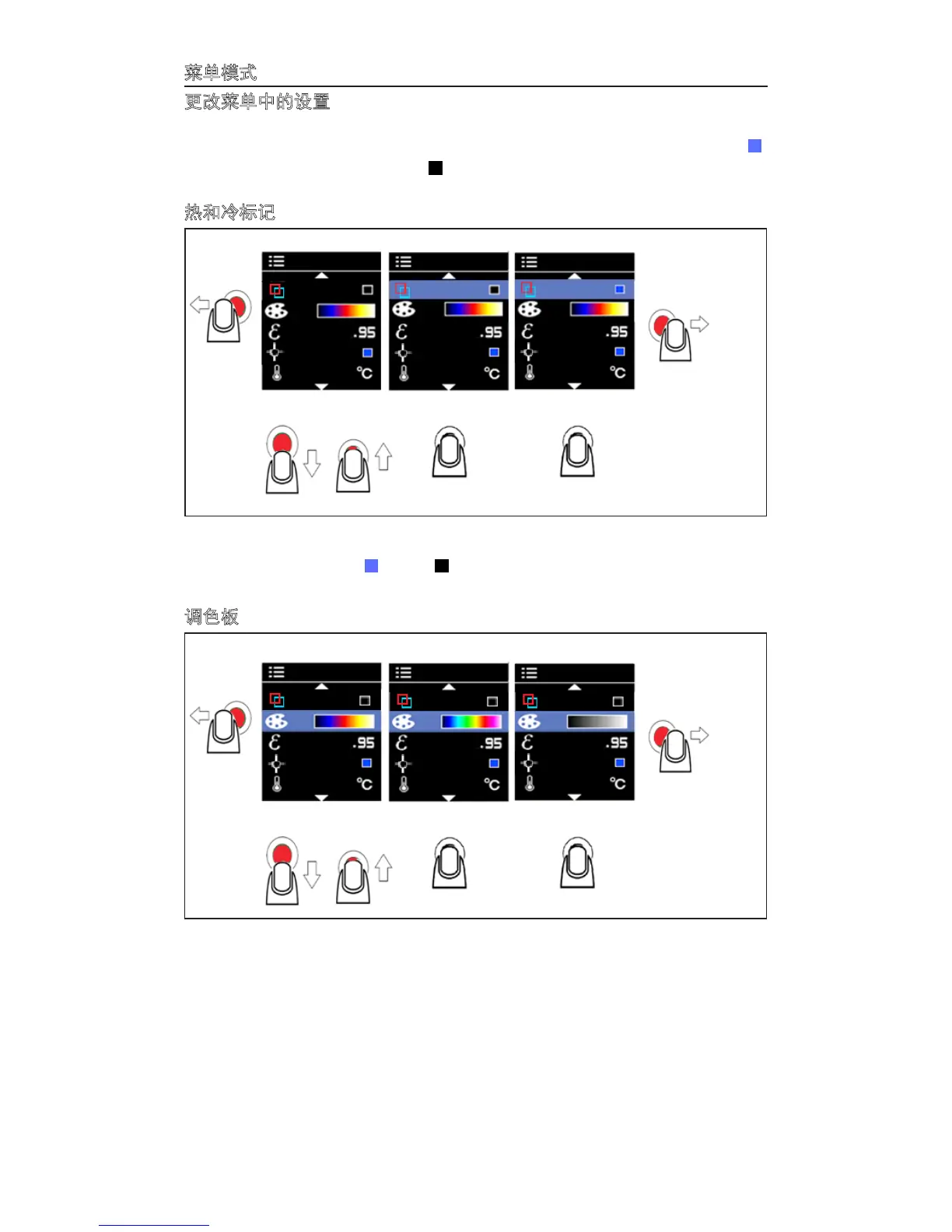 产品开机后,左击电源按钮即可达到菜单。可操作的设置包括热和冷标记、调色