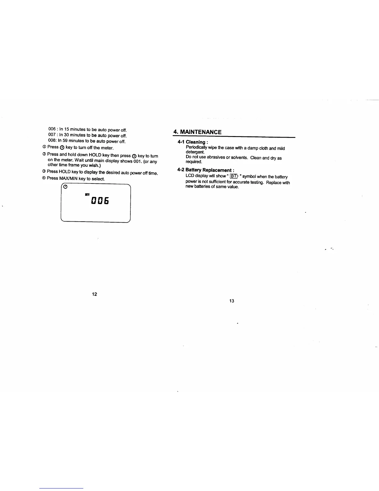 Amprobe THWD-2 - Maintenance; Cleaning; Battery Replacement