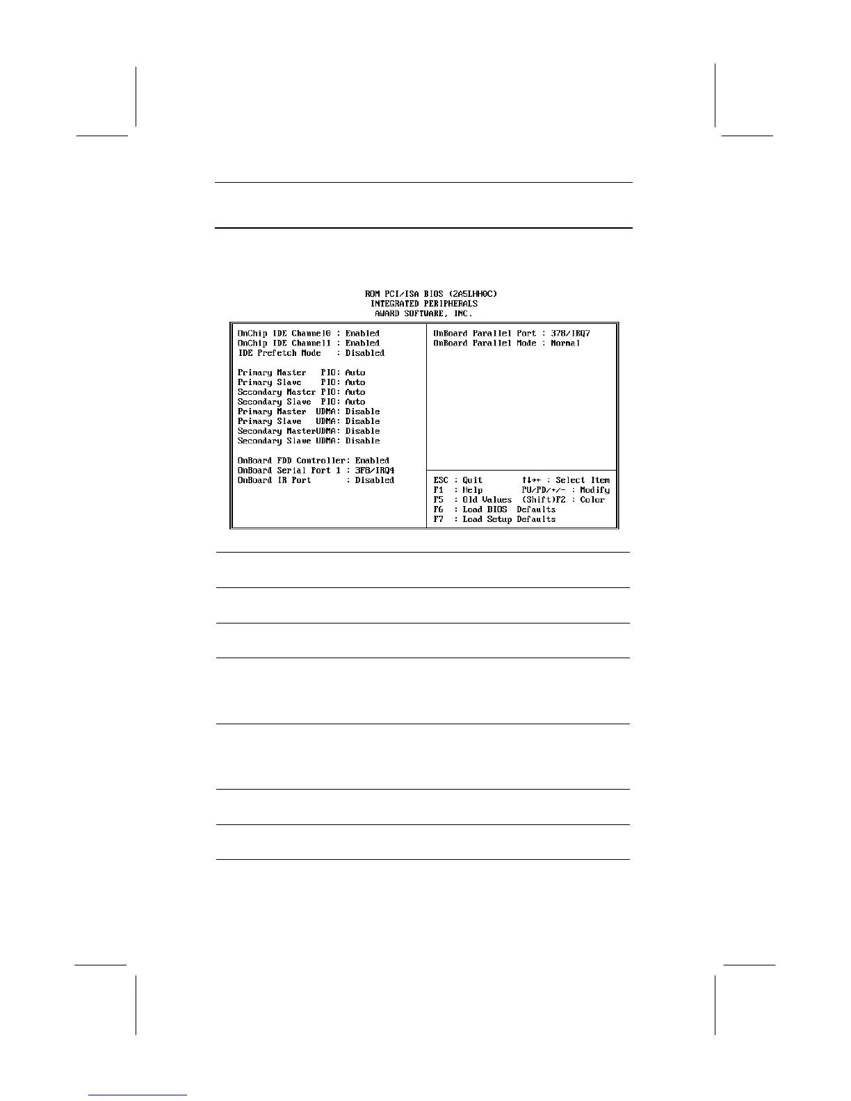 Integrated Peripherals Setup Page