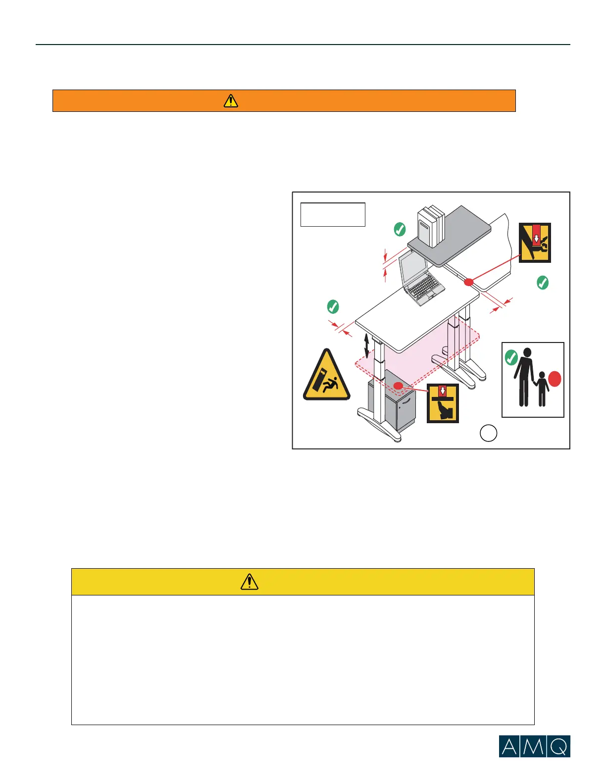 allow movement of desktop through full range without pulling cords, trapping body parts, or colliding with