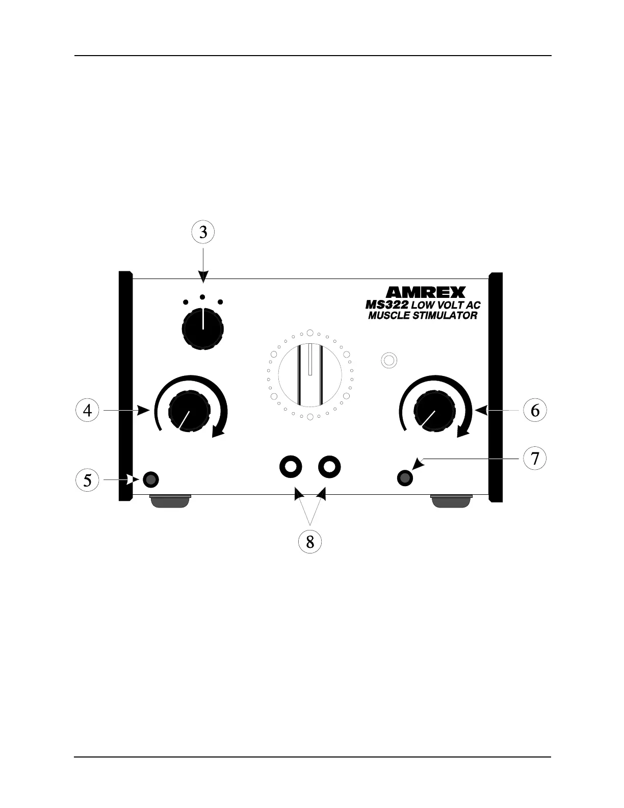The low volt ac stimulator section of the MS322 panel is depicted below. Items