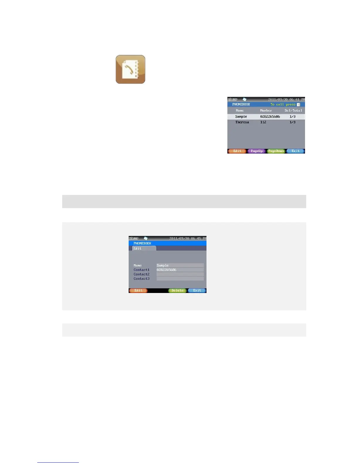 your contacts (Name and Phone Number) in the PHONEBOOK
