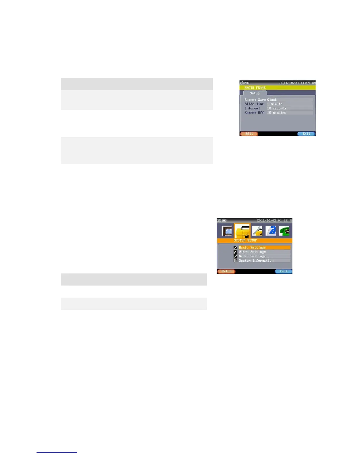 This mode contains some basic system settings of this