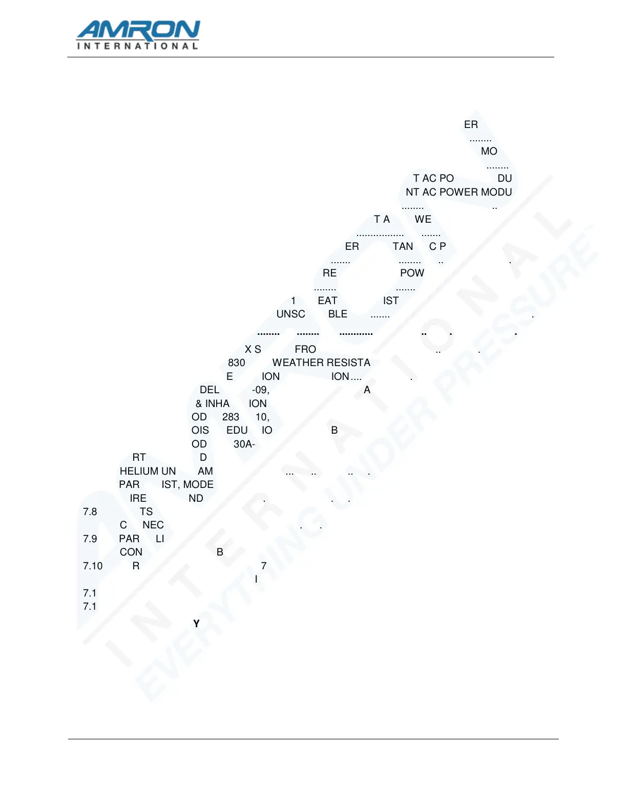 7.4 PARTS LIST, MODEL 2830A-10, WEATHER RESISTANT AC POWER MODULE,
