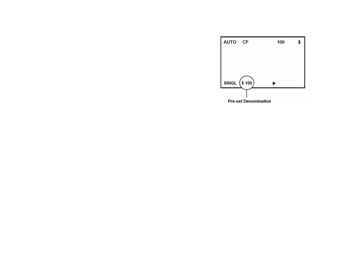 recognized banknote and sets it as the selected denomination to be counted and sorted. Selected denomination under