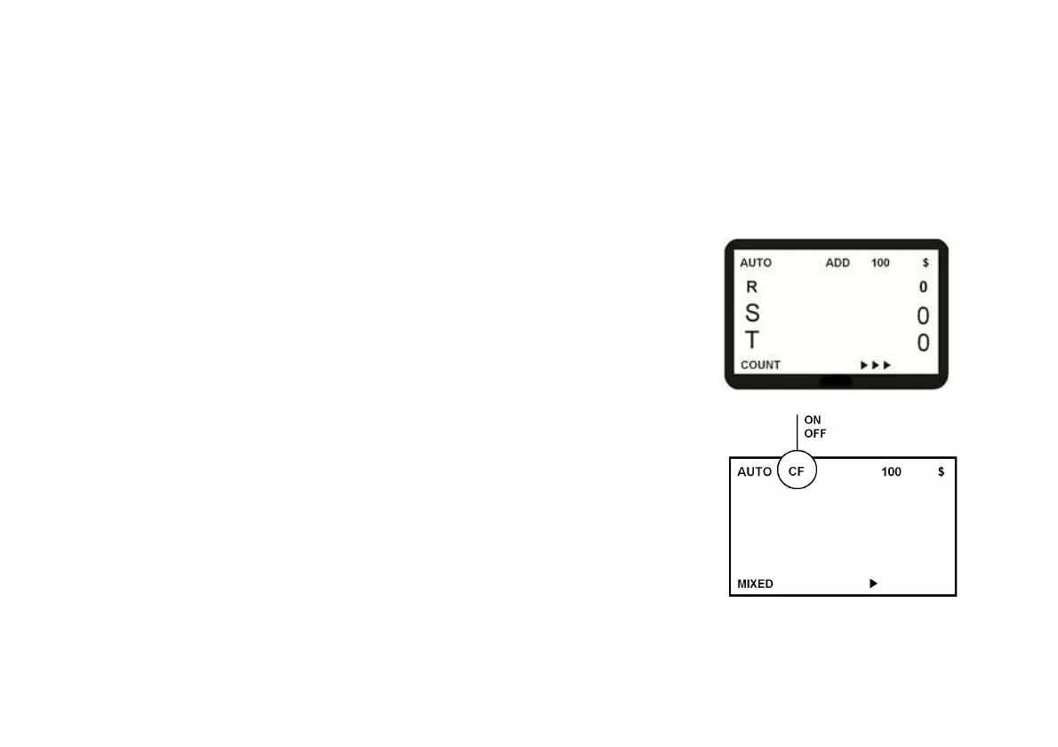 In Count mode, the machine counts banknotes by its pieces without denominating a