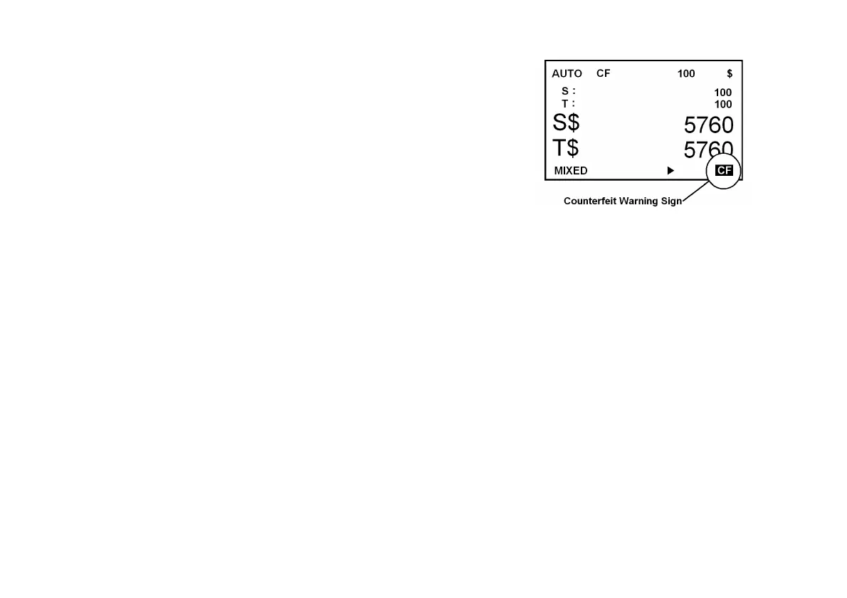If a banknote is determined as suspect, CF sign indicates on LCD screen as