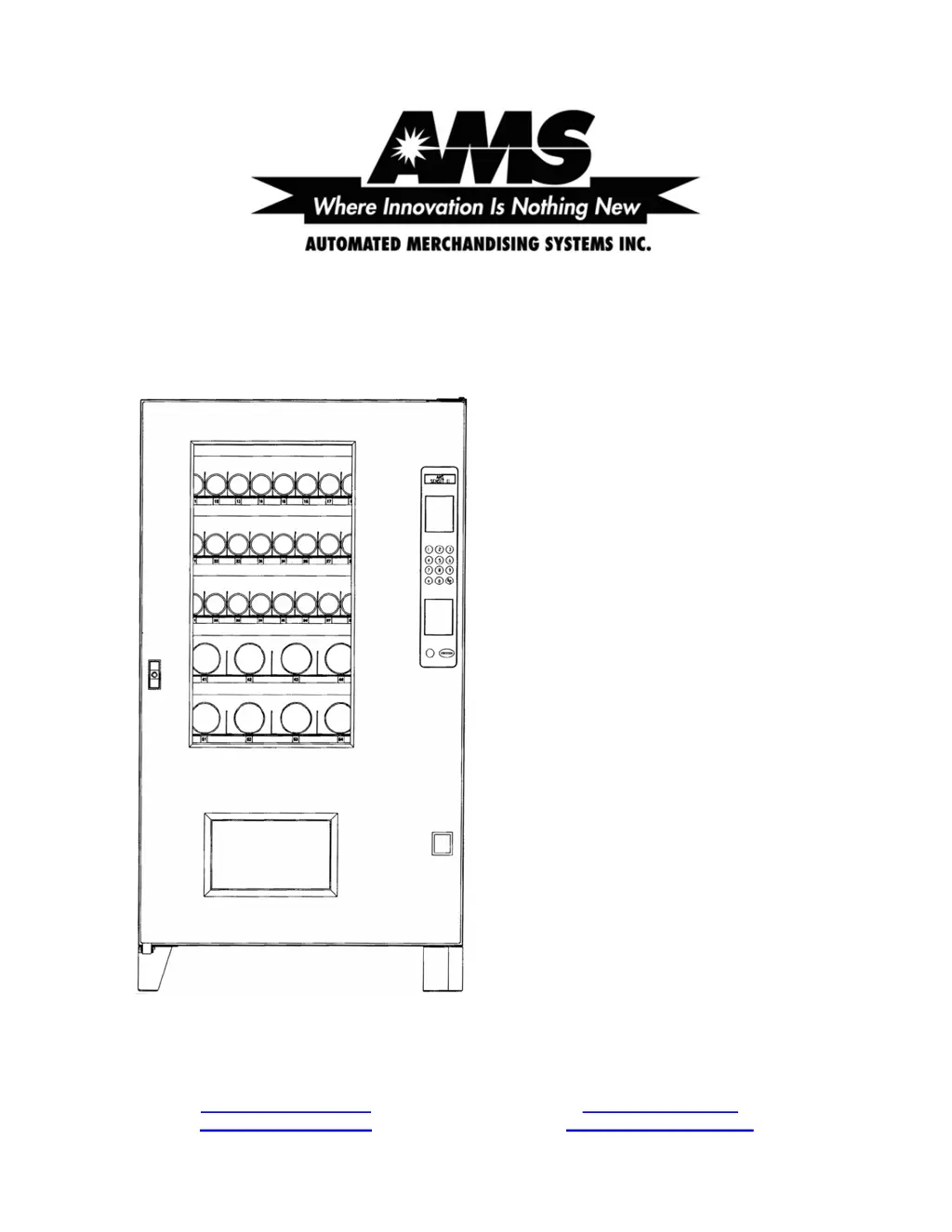 If there is no power at the control board of your AMS Vending machine, consider the following potential causes: 1. There is no power from the power cord. Check the power cord, outlet, and supply. 2. The 3.0 amp fuse is blown. Replace the 3.0 amp fuse. 3. The fuse harness is not connected to the back of the fuse holder. Connect the fuse holder harness. 4. The power harness is disconnected. Reconnect the power harness. 5. There is a short or cut in the power harness between the transformer and the control board. Check continuity through the power harness, and if there is no continuity, replace the power harness. 6. The transformer does not have power at the 24 VAC secondary side. Ensure the primary side of the transformer is receiving power. If there is no 24 VAC on the secondary side...