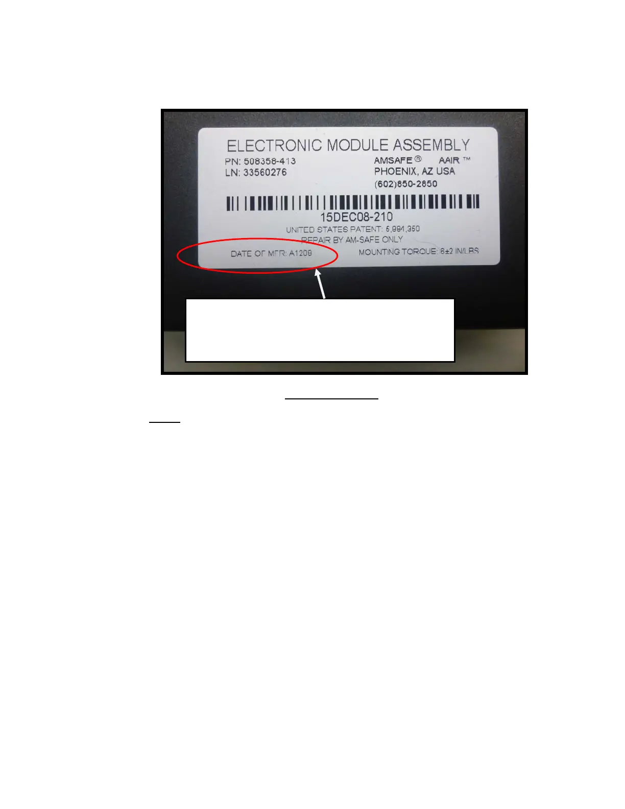 NOTE: IF THE INFLATOR HAS BEEN REWORKED OR REFURBISHED THERE WILL BE