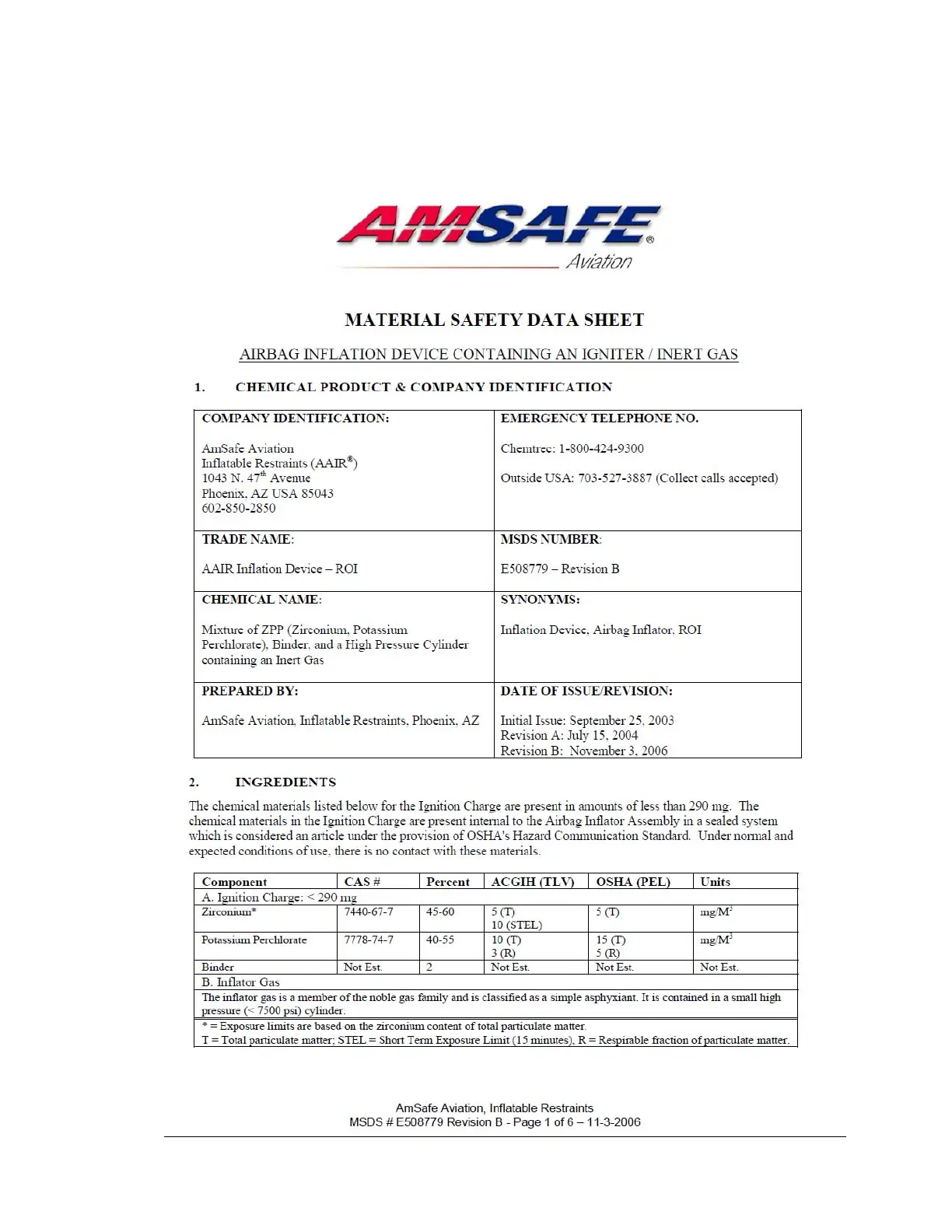 AMSAFE V23 - ROI MSDS for Airbag Inflator