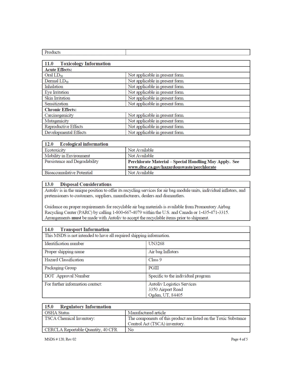 SHIPPING, TRANSPORTATION, HANDLING, STORAGE PROCEDURES