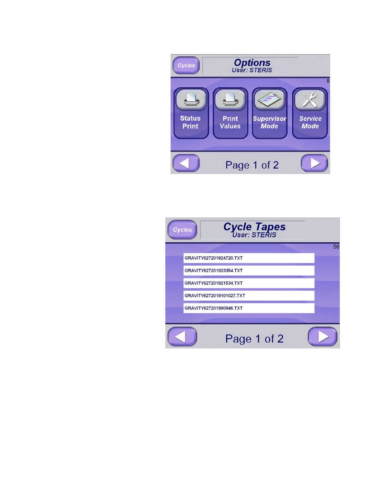 Cycle Tapes button will be shown on Page 2 of 2. Pressing button will