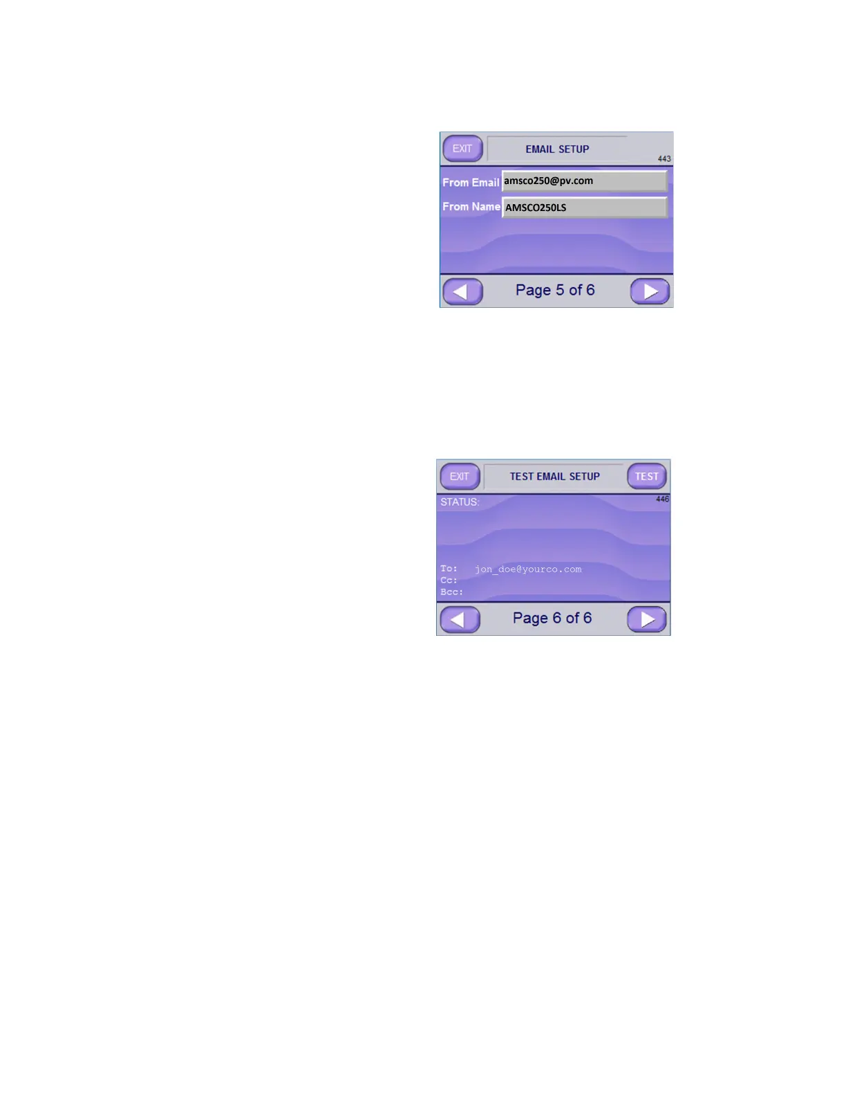13. Press the RIGHT ARROW button to advance to the Test Email