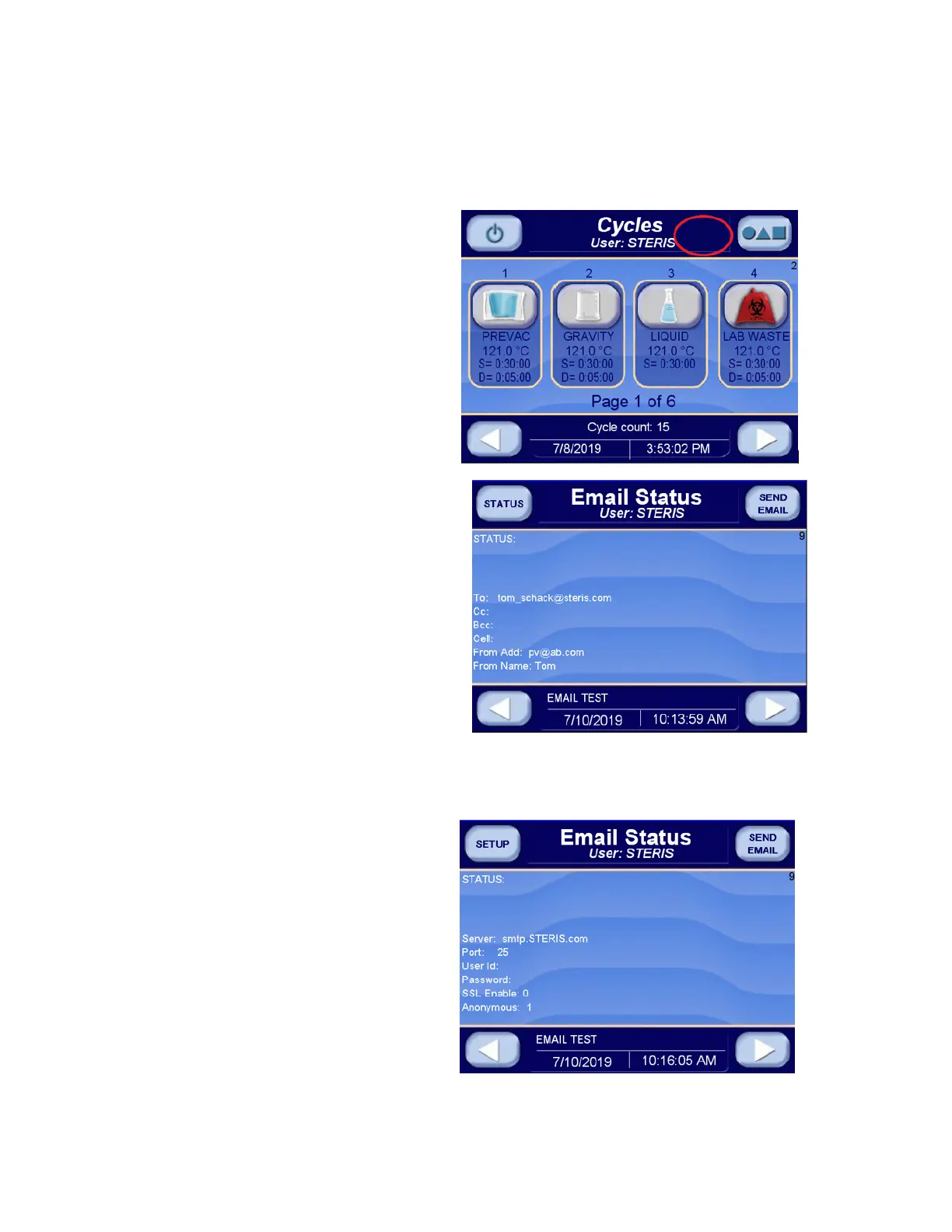 Press upper part of the Cycles screen (screen 2 through 7) to show