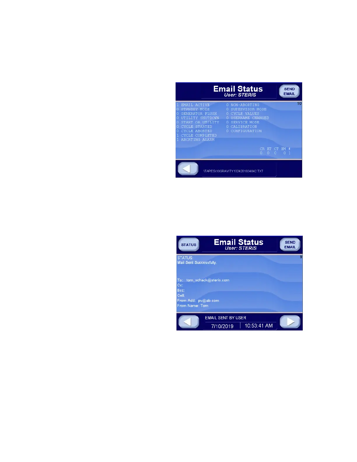 Press SEND EMAIL button to send an Email Test to user(s) shown in