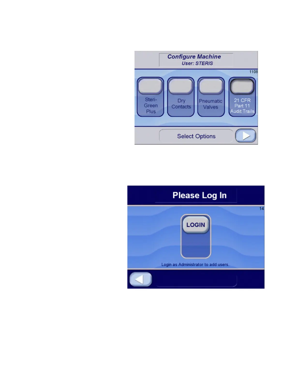 Sterilizer. Select 21 CFR Part 11 Audit trails button on following screen.